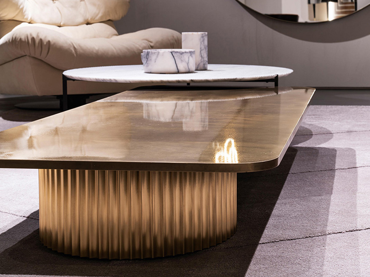 A valuable piece of furniture, capable of enriching common spaces and living rooms all over the world thanks to its peculiar design, made up of references to the past and rich current solutions. Allure was born with an MDF structure with different colors including copper, brass and shiny antique nickel silver. There are also numerous sizes created to adapt to spaces with different sizes and different furnishing needs as well as to create real organic compositions on multiple levels. The Allure collection of coffee tables have a grooved base reminiscent of the ancient columns of Greek and Roman temples emphasized by classical echoes, however dampened by choices of more modern and contemporary finishes.