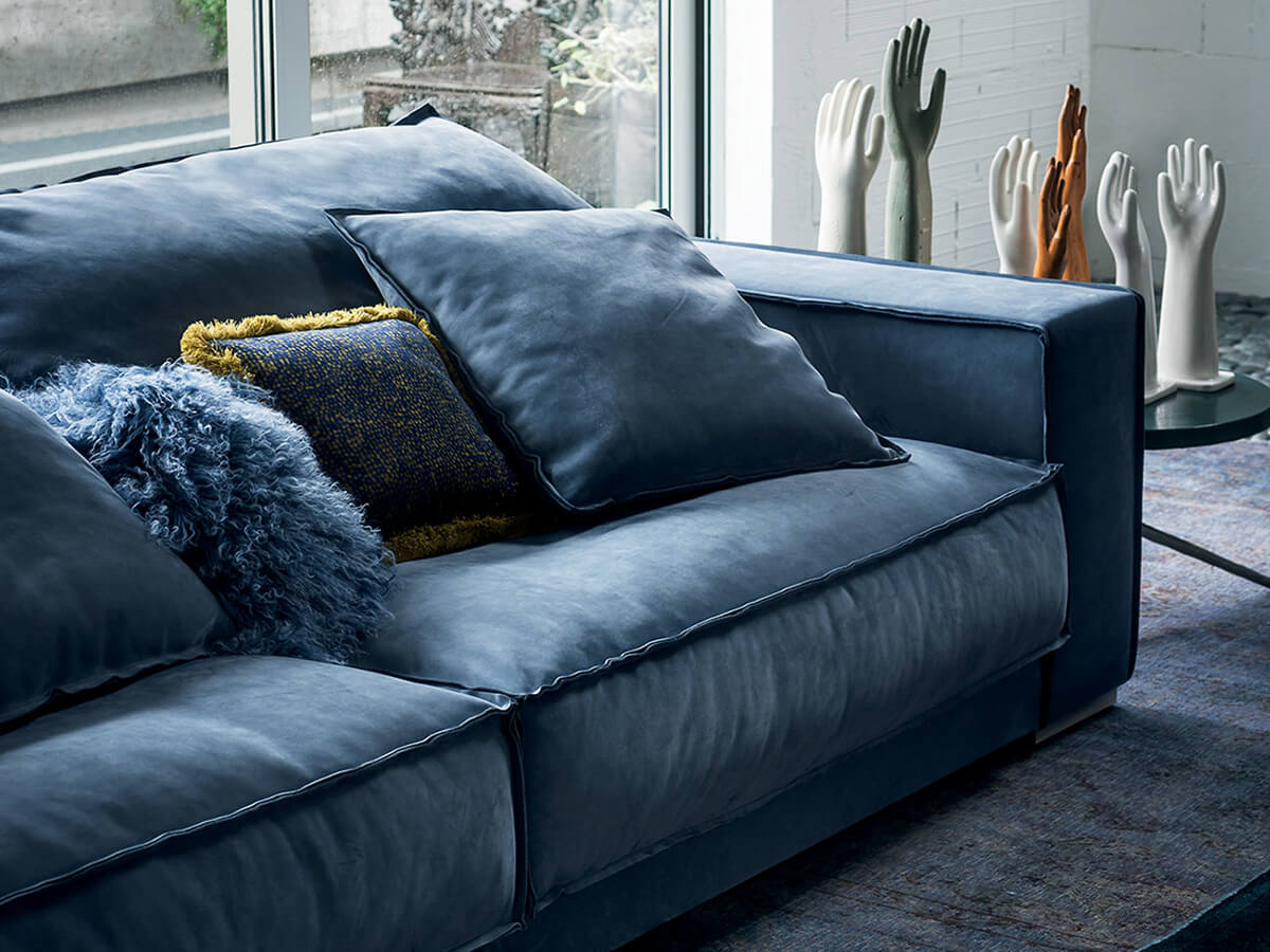 Budapest is a sofa capable of marrying different tastes and styles, associating square shapes with unexpected softness, ideal for the most relaxing and convivial environments of the home. Among its lucky variations we mention Budapest Soft and Budapest Air, born from the need to further increase this cornerstone of the Baxter Made in Italy company. In its most classic version, Budapest has a watershed between the structure and the armrests, more rigid and compact, and the soft cushions of the seat in goose down. Budapest Soft instead presents a more informal design, which plays on proportions and geometries of fresher inspiration. Budapest Air stands out for the choice of raised feet and new aesthetic games. The skilful choice of Baxter leathers makes each model an example of impeccable comfort and comfort.