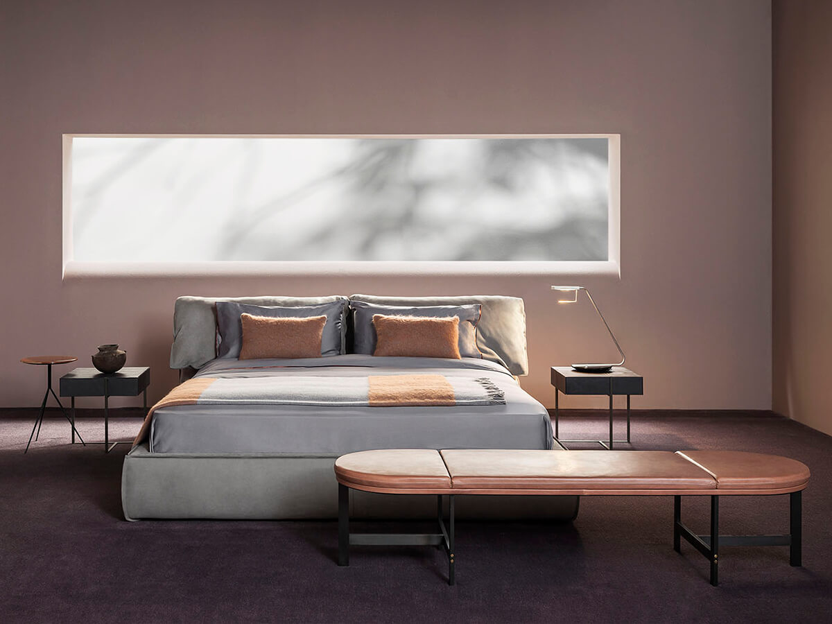 The Casablanca collection by Baxter includes some proposals for upholstered furniture, ideal for the night or day area. Among these, the Casablanca bed stands out for its elegance and formal rigor, peculiar inspirations of Paola Navone's design. The figure of Casablanca succeeds in the difficult task of satisfying the most difficult tastes, transporting aesthetics into a dimension of luxury and simplicity at the same time. The structure includes four removable bands in fir honeycomb. The padding is in differentiated density polyurethane foam with acrylic fiber covering. The headboard, comfortable both during rest and when sitting in a sitting position, is made of goose down. The leather upholstery features sharp edge stitching to embellish the overall figure.