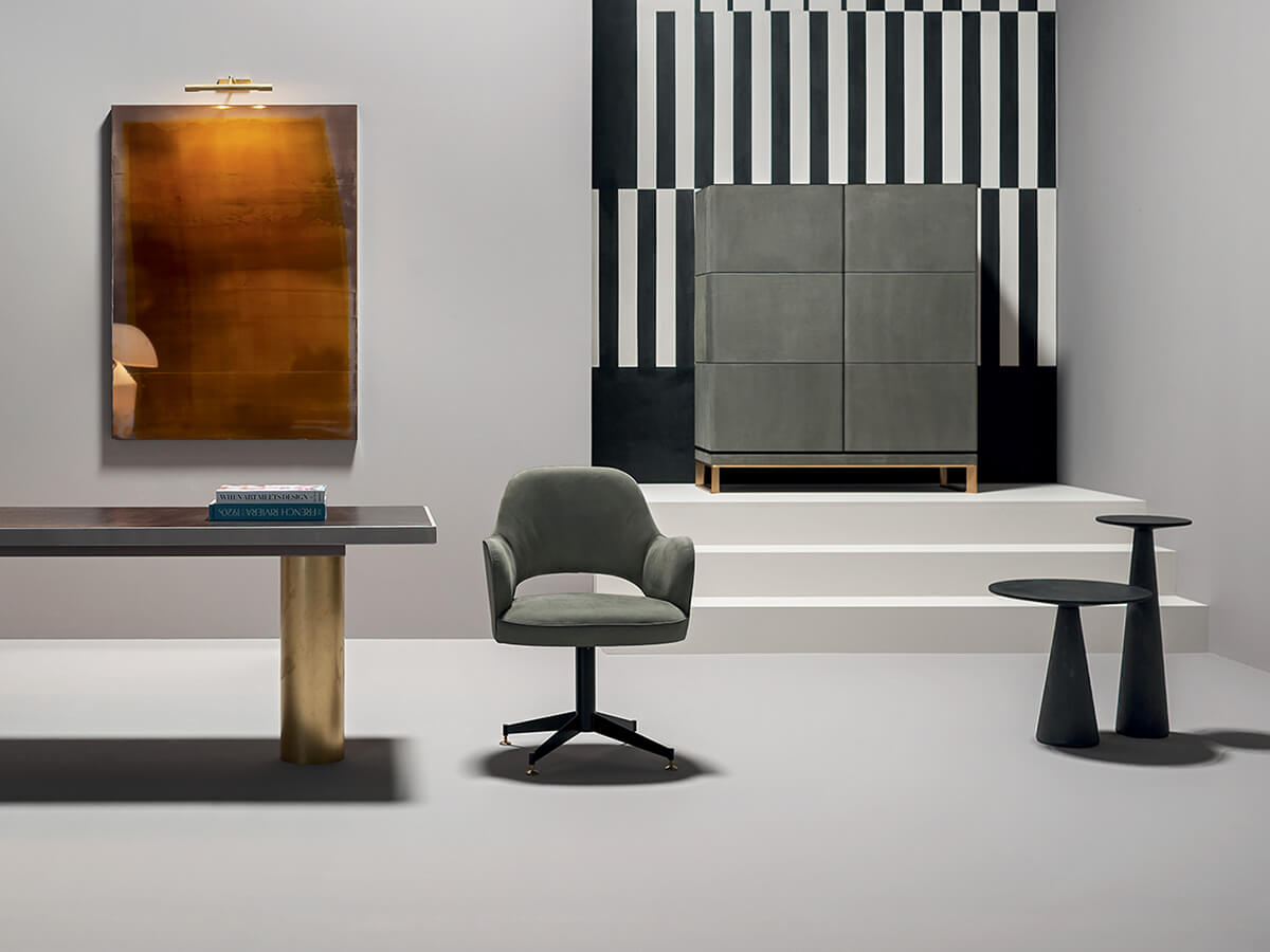 Roberto Lazzeroni (1950-) is one of the leading Italian designers on the contemporary scene. His sign, measuredly retro but with an eye firmly on the future, gives life to highly decorative furnishings, with refined elegance, in which precious materials are revitalized by sinuous curves that give them an impression of warm and enveloping luxury. Born in Pisa and trained as an architect in Florence, close to Radical Design in his youth, he was active for several years in the field of interior architecture before approaching product design thanks to the partnership with Ceccotti Collezioni, which began in 1988 and continued until today. Over the years he has managed to achieve ever-increasing success, appearing today among the most prestigious brands of brands such as Baxter, Poltrona Frau, Flexform Mood, Giorgetti, Lema, Antoniolupi, Visionnaire and Zanotta.Read more