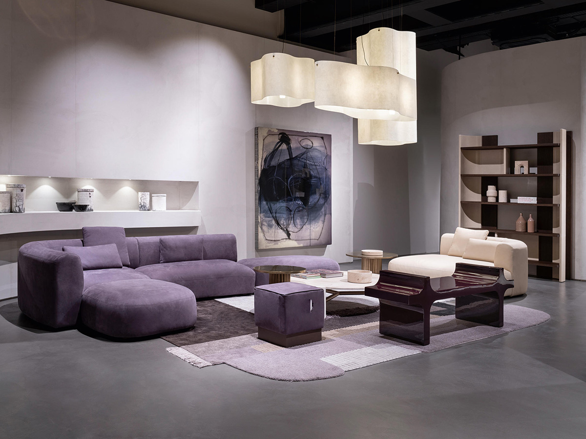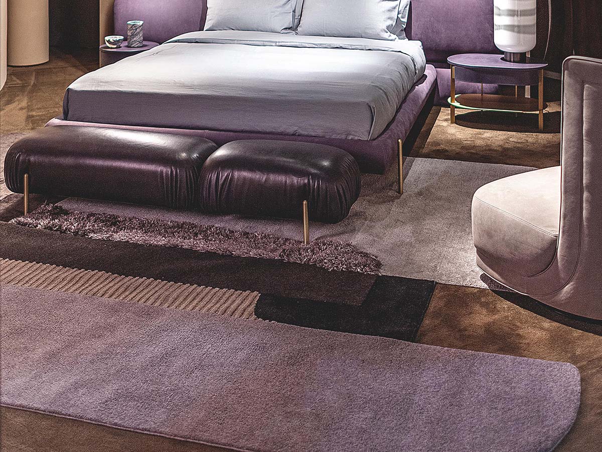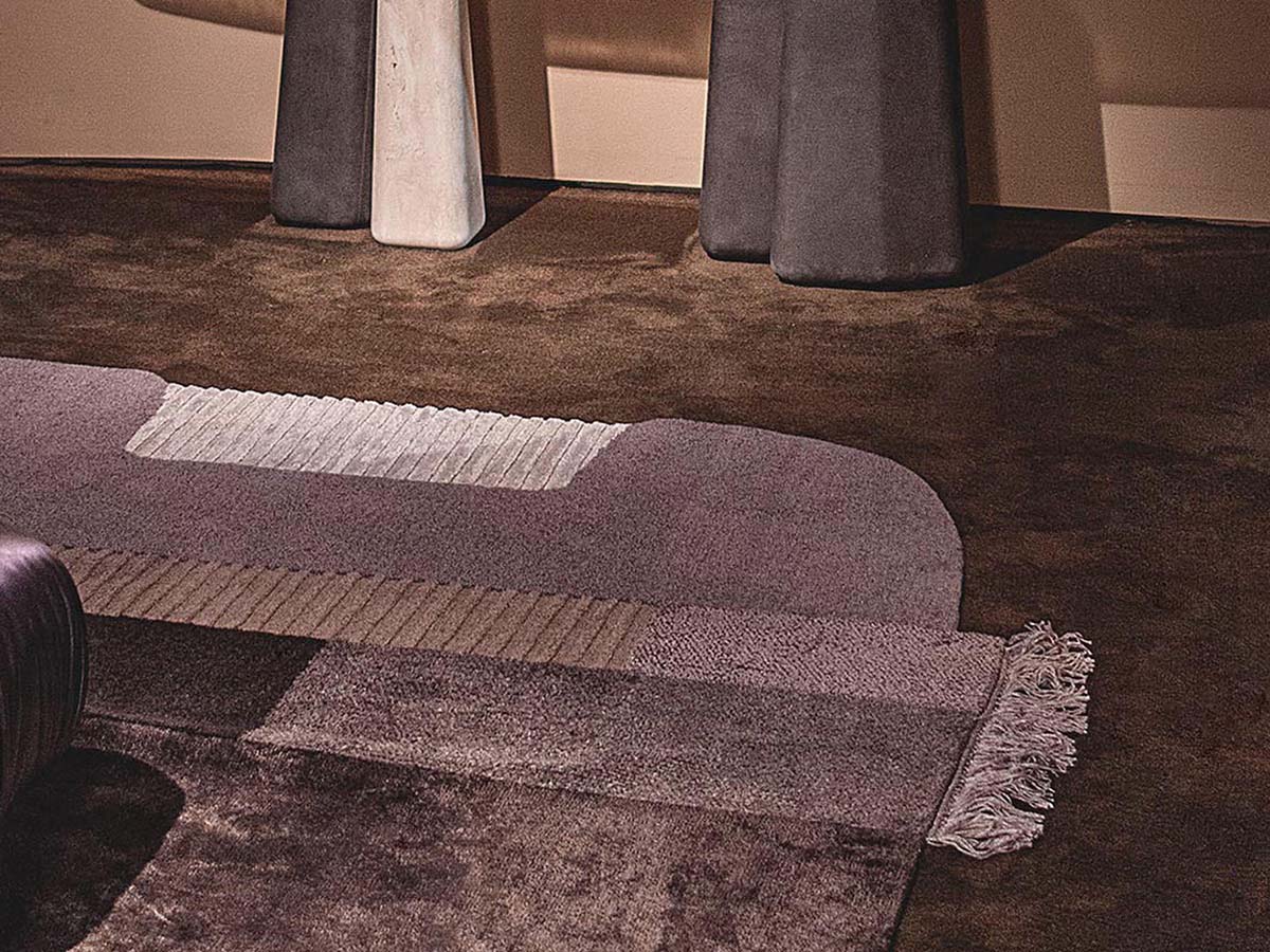 A carpet that rightfully enters the Baxter collections for its originality as well as the deliberately bold choice to create irregular shapes and numerous contrasts to better enhance the chromatic spectrum and the use of diversified fibres. Himani is a carpet where textures, three-dimensional elements, heterogeneous surfaces and colors are grafted into deliberately unconventional compositions to create a spirit of originality and imagination. The beauty of the design is grafted onto the stylistic modernity which places this carpet in diversified and deeply inspiring environments.