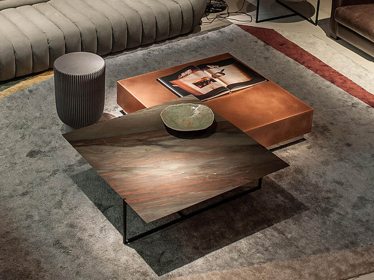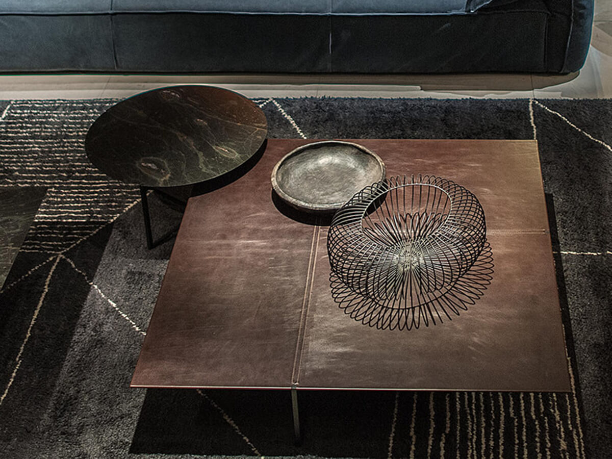 The Icaro line includes numerous proposals for the living and sleeping areas; a diversified choice of furniture, able to go beyond the Baxter style for formal clarity and design purity. In its meaning as a coffee table, Icaro is declined in numerous models and geometries, ranging from rectangle to square, without however neglecting the round in different diameters. The resulting game is masterful, and deliberately created to give life to dynamic compositions made of highs, lows and unexpected solutions. The painted metal base accommodates the top in different finishes, chosen from among the numerous Baxter proposals to best enhance the soul of this piece of furniture.* Technical features: structure in matt black painted metal