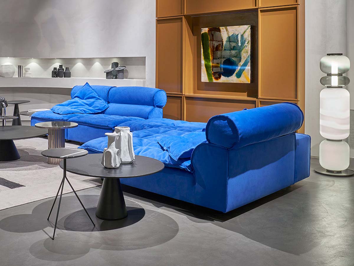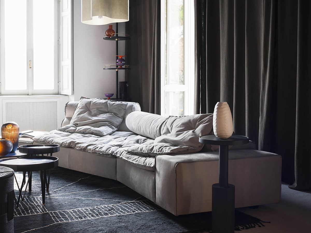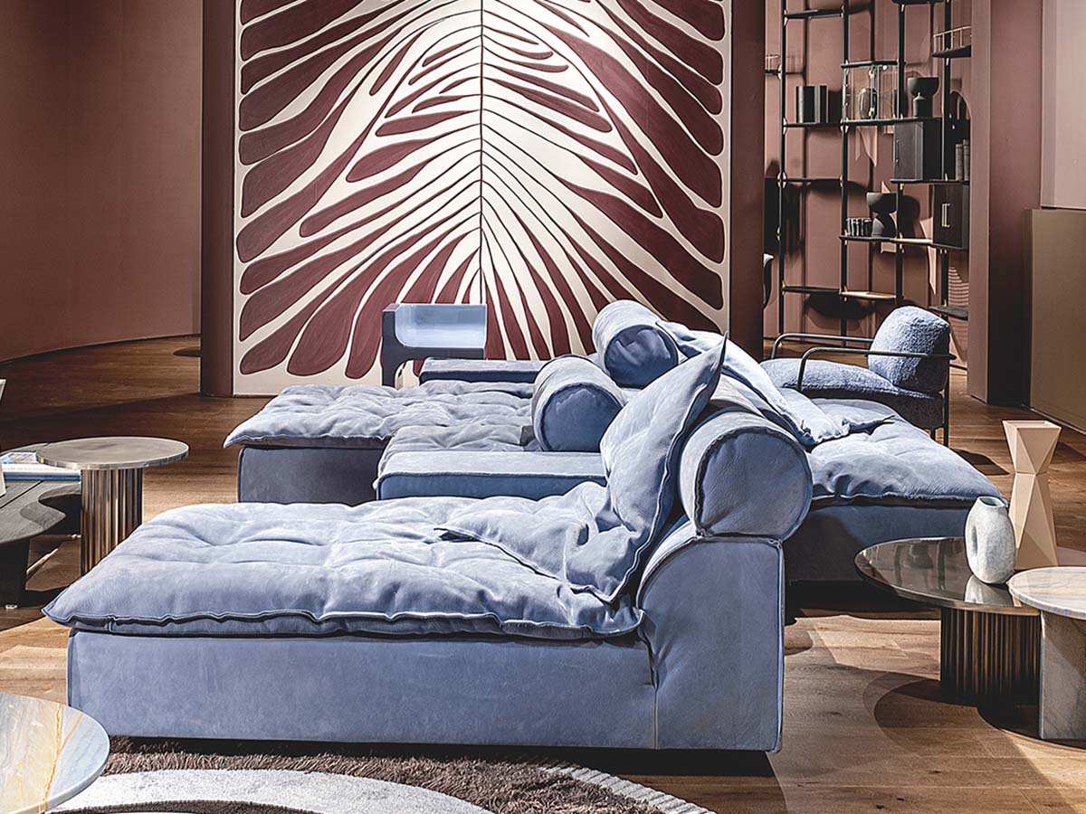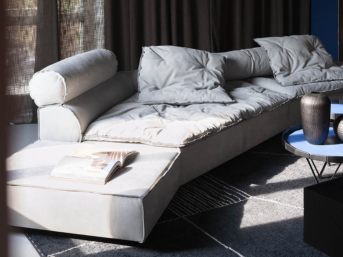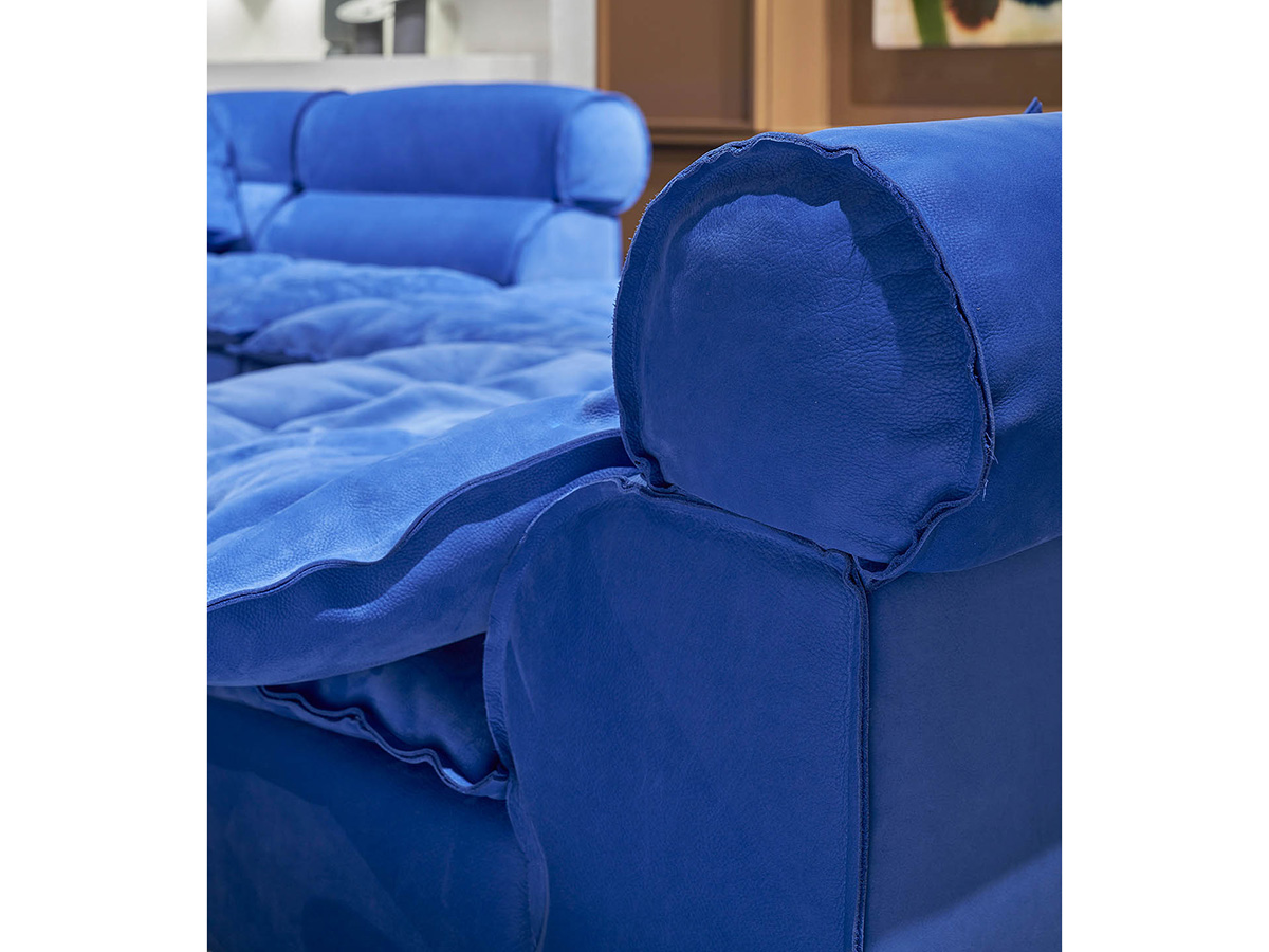 An iconic sofa, which has conquered the world with its gentle shapes and generous proportions. Paola Navone designed itwith an informal touch that seems to reflect a very contemporary need for simplicity mixed with geometric rigor. Ideal for large, spacious living spaces, Miami Soft refers to the idea of style typical of the fifties and sixties refined by Italian tradition and the company's attentive eye. The strong point of this sofa are the double-sided geometries, which make it perfect for living environments and convivial situations where the sofa has a central position, and the fine leather upholstery, which has always been one of Baxter's guarantees for upholstered furniture and seats. Overall, Miami Soft is a versatile object that adapts to a modern taste that never stops seeking personality and excellence.