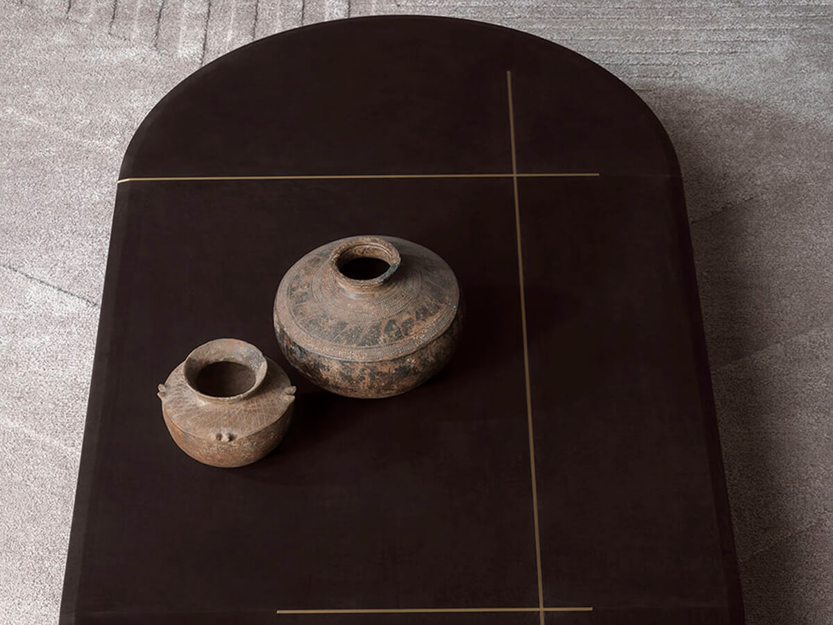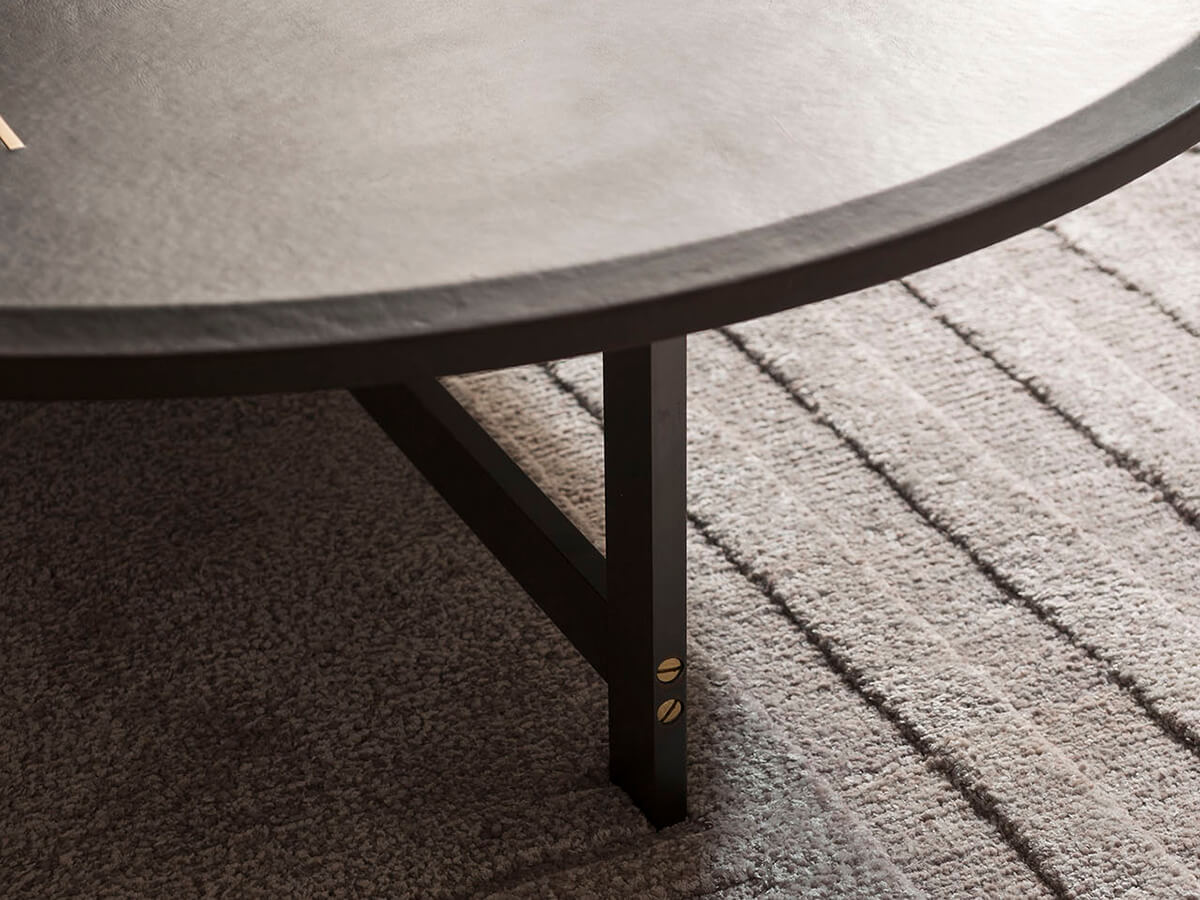 The Placé series includes numerous proposals of tables and coffee tables of extreme formal taste. The pure essence mixed with a lucid aesthetic inspiration outlines them with a cut that is well suited to the contemporary taste of dining rooms, living spaces and more convivial areas. The tables in particular have a brass base with bronzing oxidation on the flat part and satin finish on the thickness. The top is made with a MDF top reinforced with aluminium sheets covered in leather or, optionally, a reinforced under-top in aluminium honeycomb and a stone top with protective oil. The numerous choices available make Placé extremely usable also thanks to the variations in height and dimensions, ideal for creating dynamic compositions.* Technical features: burnished effect painted metal structure with satin brass details