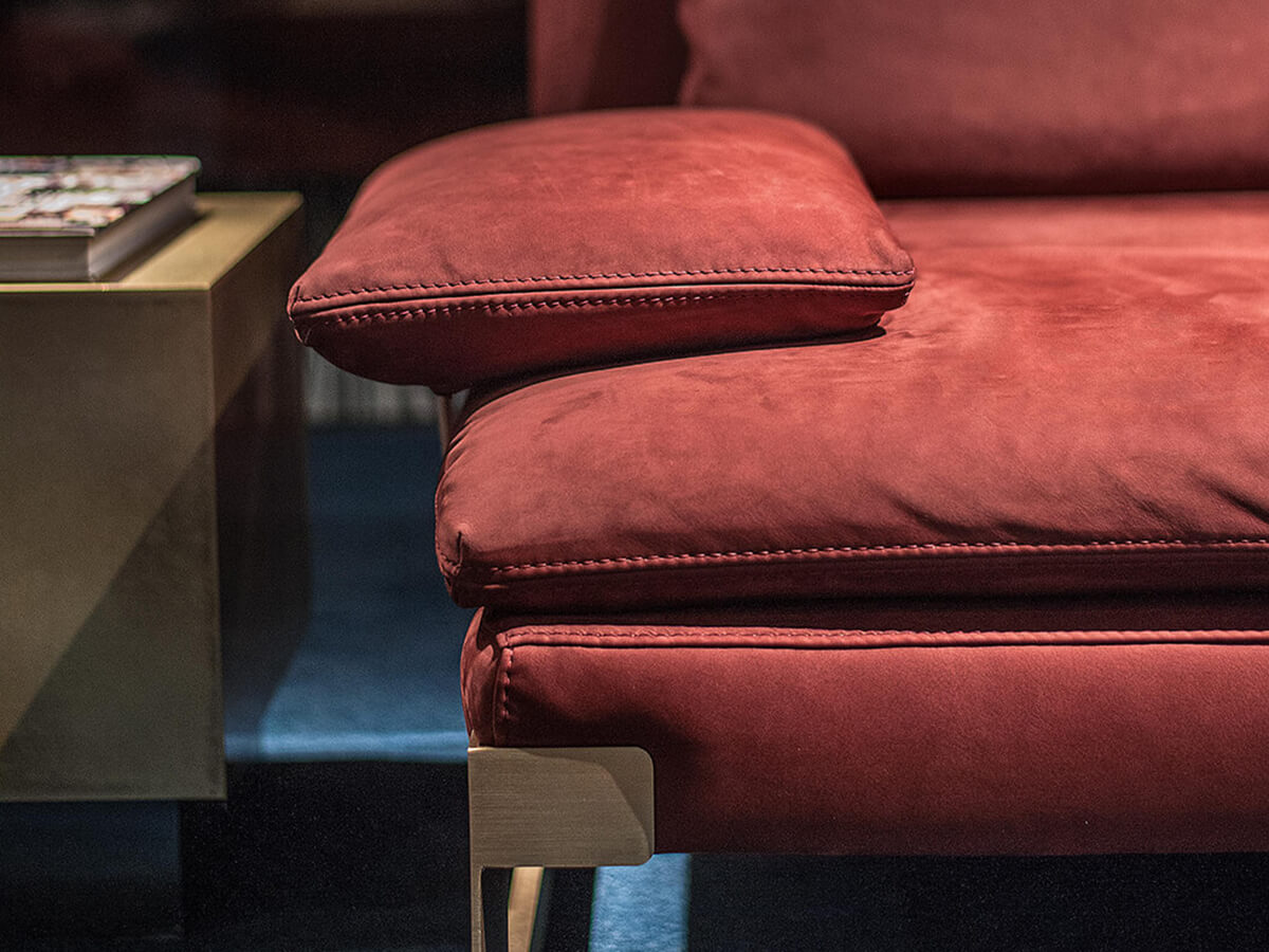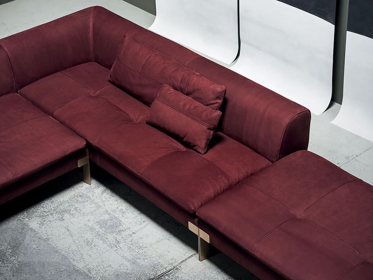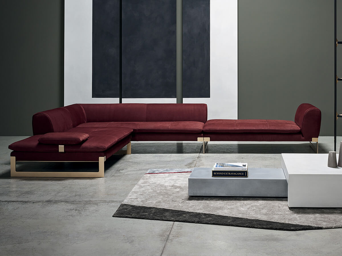 The Viktor collection includes numerous proposals including the sofa and a bed, both expressions of a simple and linear aesthetic line, capable of developing on several levels without ever losing their characteristic trait. The painted metal structure of the modular sofa is supported by feet in satin brass-plated metal. The padding in differentiated density polyurethane foam with acrylic fiber coating is perfect for giving character and durability to the entire structure without neglecting comfort. Thanks to its modularity, Viktor can be adapted to extremely different environments and sizes, presenting itself as a linear sofa, corner sofa, with chaise longue and more, according to taste or need.