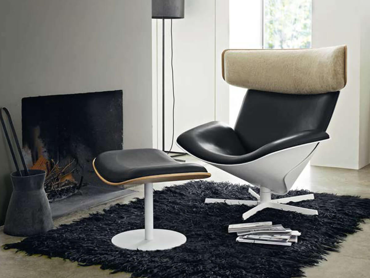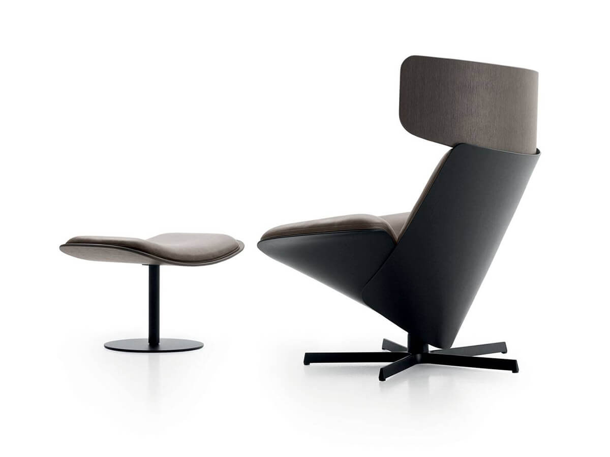 *Price valid for the version completed with ottoman - supporting frame in varnished aluminium - shell in varnished resinglass - rear part of the headrest in oak - upholstery for armchair and inner part of the headrest in leather cat. Beta (cod. AP106 + cod. AP76).