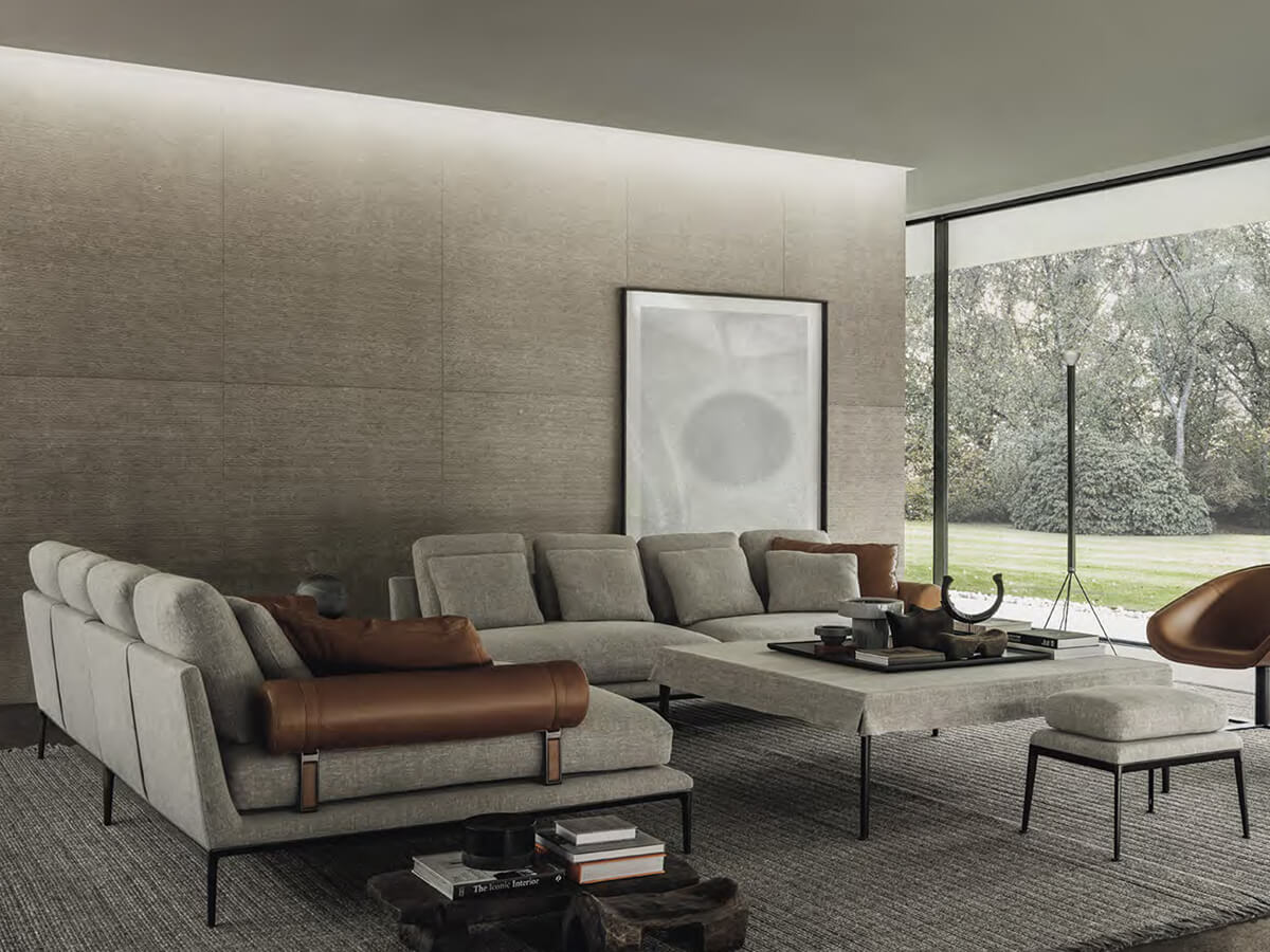 Atoll is a collection of upholstered furniture with a taste between tradition and modernity, where each element manages to express its personality thanks to a mixture of taste, comfort and craftsmanship. Among the numerous proposals of this line it is worth mentioning the modular sofa, the beds and the armchairs. In the sofa, elements with a more retro flavor such as the “bolster” are here revised and adapted to new and slender shapes obtained thanks to the die-cast aluminum feet. The wide range of fabric and leather upholstery combine to create a unique piece of furniture, perfect for the living area and any convivial space. Perfect both in the linear version and in the corner version or with chaise longue, Atoll stands out for its proportionate elegance without exaggeration.