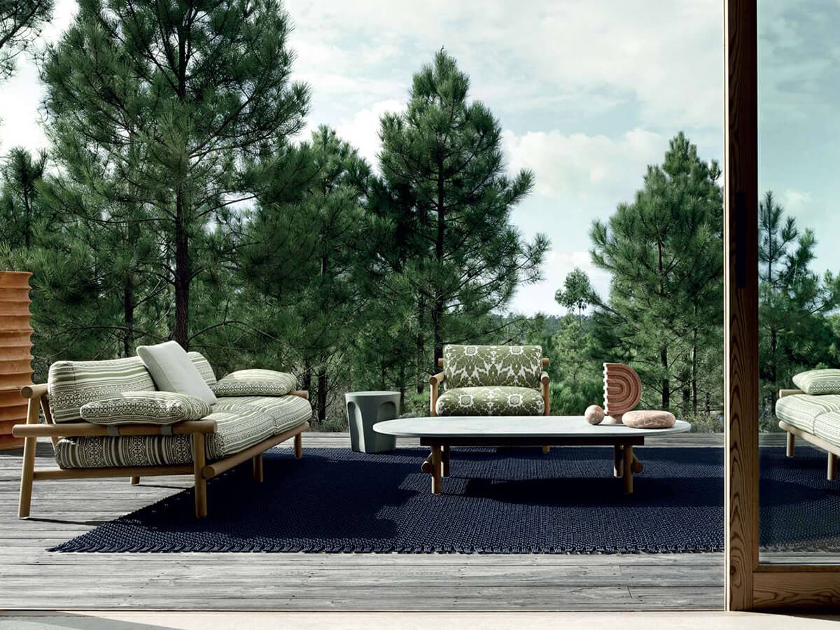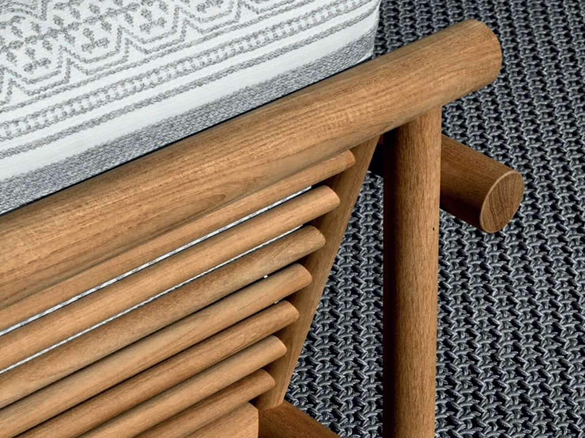 The Ayana outdoor collection takes shape from the artistic genius of Naoto Fukasawa where the absolute protagonist is wood, interpreted in an unusual way, with a pleasant oriental touch. A fusion of stylistic currents give life to the numerous proposals that include sofas, armchairs, coffee tables and much more, each coordinated to form suggestive views of a living area for the outdoors. The supporting structure in natural teak appears light while being extremely robust so as to support the weight of the body and at the same time resist the wear and tear of time. The large seat cushions are in shaped polyurethane with polyester fiber lining treated to be water repellent.* Technical features: the structure is available only in natural teak