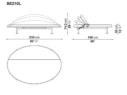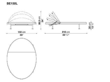 *Price valid for the version with frame in varnished aluminium - adjustable backrest - mattress covered in fabric cat. A (cod. BE210L + BE210L_SEW).
