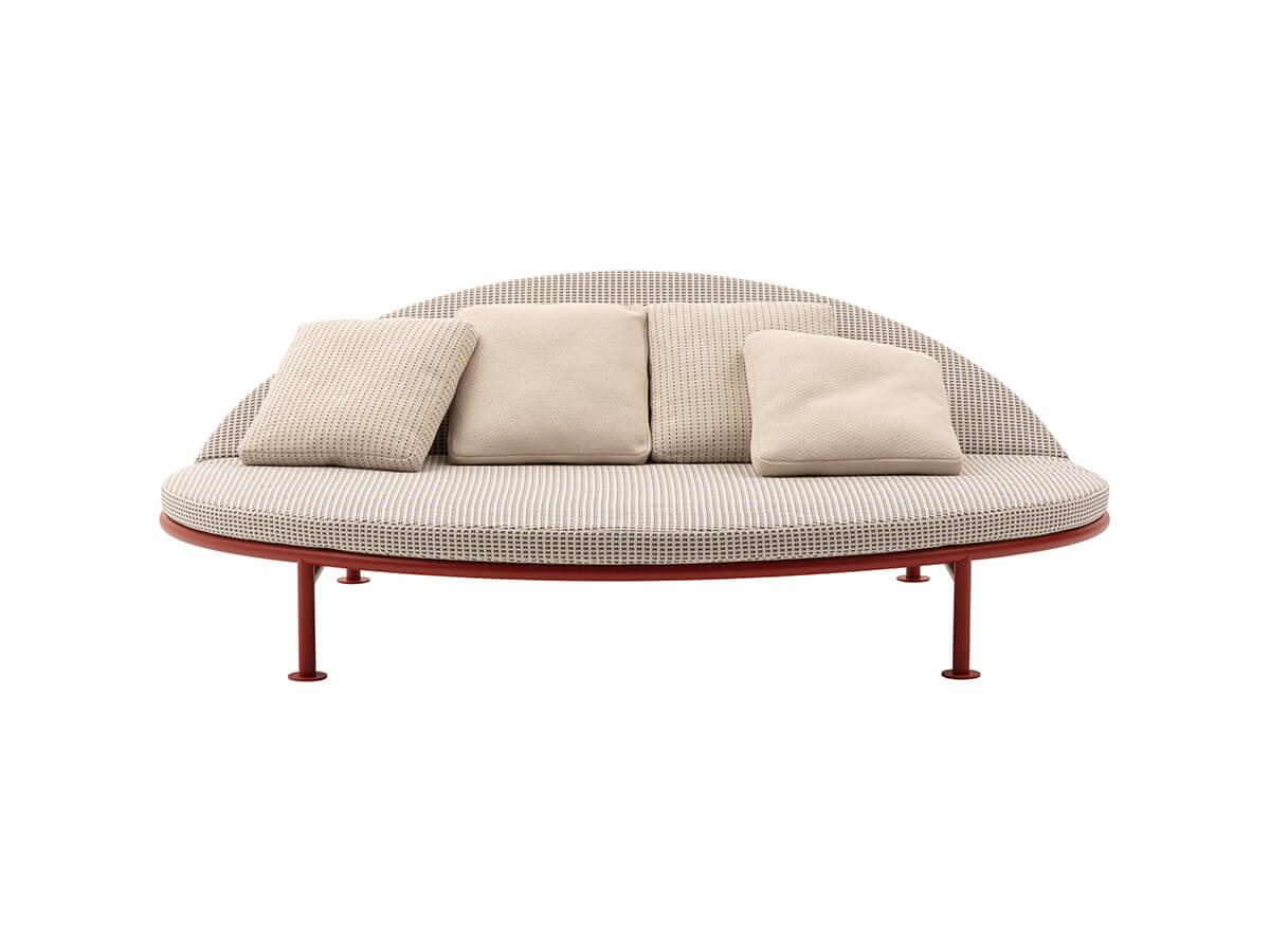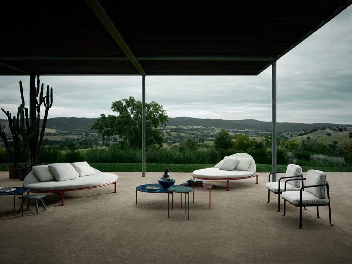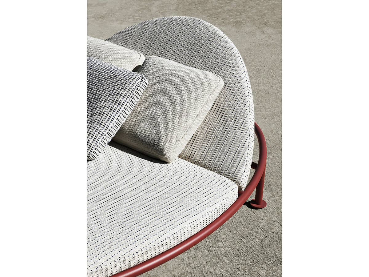 The Borea collection of outdoor furniture, designed by Piero Lissoni for B&B Italia, is enriched with new proposals for the poolside and the use of outdoor spaces. The sun lounger equipped with wheels and the oval sunbed, in the chaise longue or sofa version, are united by a light curved tubular aluminum structure, treated with weather resistant paint. The comfort is guaranteed by the large reclining backrests and by the mattresses in recycled material, covered with a wide selection of outdoor fabrics, exclusive to B&B Italia. The optional cushions allow to increase the relaxation of these seats with multiple uses, ideal in parks or by the swimming pool of private homes, hotels and exclusive resorts.