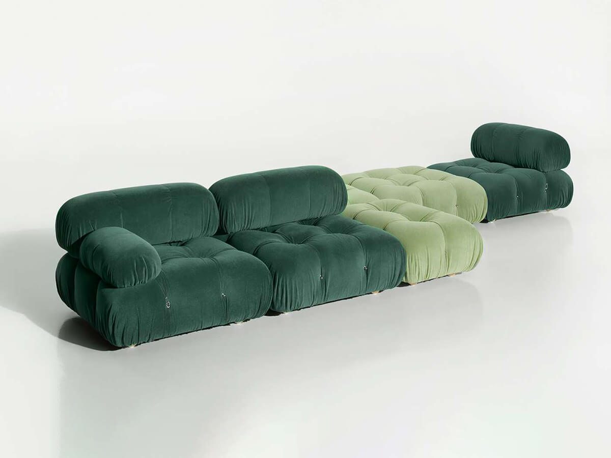 Born in 1970 from the creative genius of Mario Bellini, Camaleonda rediscovers its value as a contemporary classic thanks to the artisan quality of B&B Italia which reissues it in a modern key. The new structure keeps unchanged the generous polyurethane padding worked in the characteristic capitonné obtained also thanks to the play of cables, hooks and rings. The modularity of Camaleonda allows you to create customized variants and configurations. Seats, armrests and backrests can be freely moved at any time, continuously changing the appearance of this contemporary design classic. The infinite range of coverings and finishes proposed by B&B Italia provides a further valuable element of this upholstery.* Technical features: feet in natural beech and metal elements in polished chromed steel