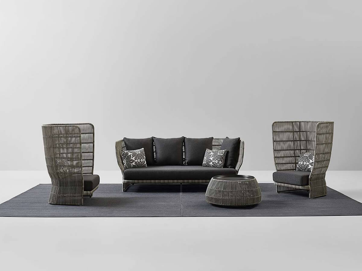 The Canasta line for outdoor combines the skilful use of weaves and fibers with a design capable of surprising and fully reflecting the beauty of being outdoors. The Canasta sofa, like the Canasta ’13, is distinguished by its peculiar "nest" shape. A soft seat cushion in shaped polyurethane welcomes the body in turn supported by the polyester fiber cushions. Each element is specifically designed for the outdoors, ensuring resistance and durability over time. Even the colors chosen by B&B Italia for this range of furniture recalls the natural fibers and colors of the outdoor world.*Technical features:- classic version: available with white painted aluminum structure and white polyethylene fiber weaving- '13 version available with dove-gray painted aluminum structure and dove-gray polyethylene fiber weave
