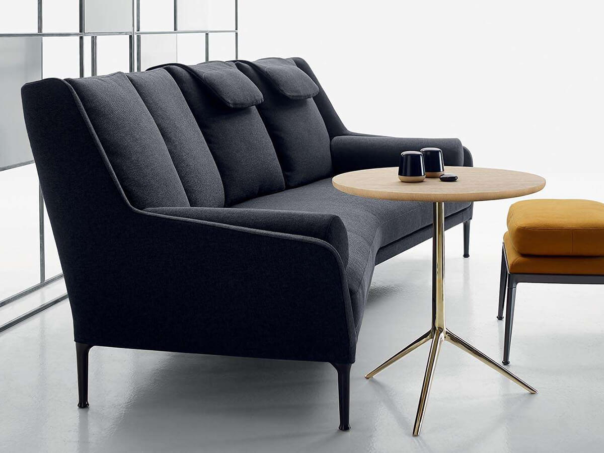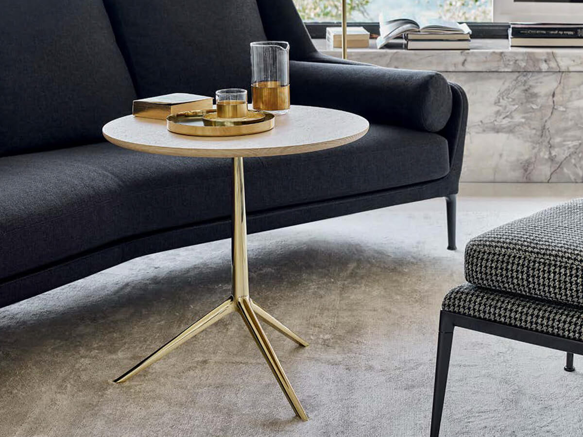 For elegance and aesthetics, the Cozy coffee table series invites you to take a dip in the past and in the traditional of the classic tripod guéridon. The exquisitely evocative shapes of Cozy are a real tribute to this kind of furniture appreciated by many and revisited here in the idea of creating a piece of high design, deliberately eccentric and unconventional. The brass structure supports the MDF wood fiber panel, glass, marble and more according to taste or aesthetic needs. The artisan quality of B&B Italia ensures maximum resistance and durability over time.