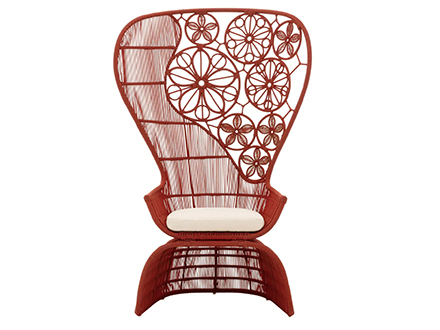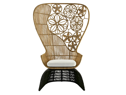 A unique and extremely distinctive design, capable of recalling both the skirts of nineteenth-century ladies and the solid structure of Indian huts. Crinoline is a tribute to architecture obtained thanks to the precious interweaving of abaca and abaca fiber. The completely natural material makes Crinoline a successful example of sustainable furniture embellished with handcrafted details of great value. Available in small armchairs, armchairs, tables, chairs and stools, this collection is the perfect link between exterior, interior and high-end furniture.*Technical features:- high-backed armchair with decoration: base with weaving in gray abaca and seat with weaving in natural abaca;- armchair with high (without decoration) and low back: structure in dove-gray painted aluminum - base and seat with dove-gray polyethylene fiber weave