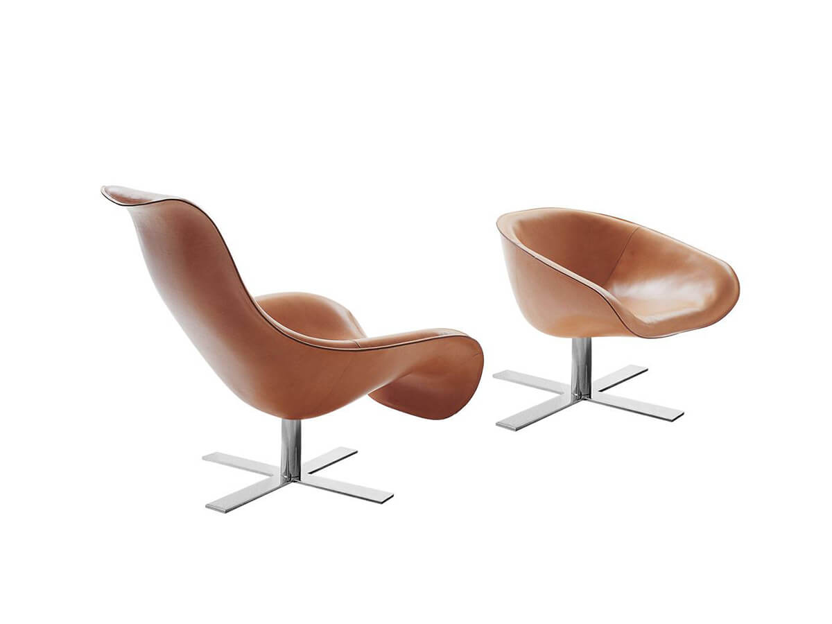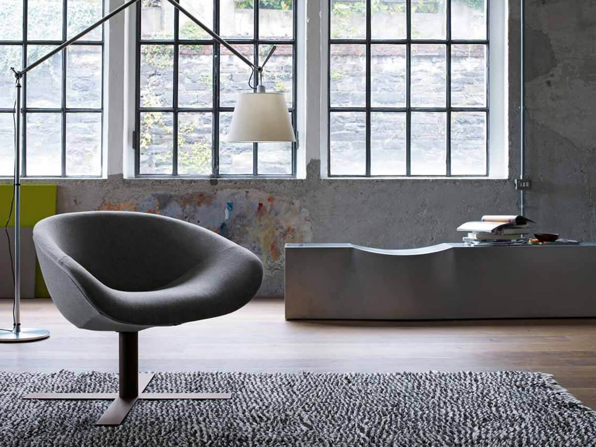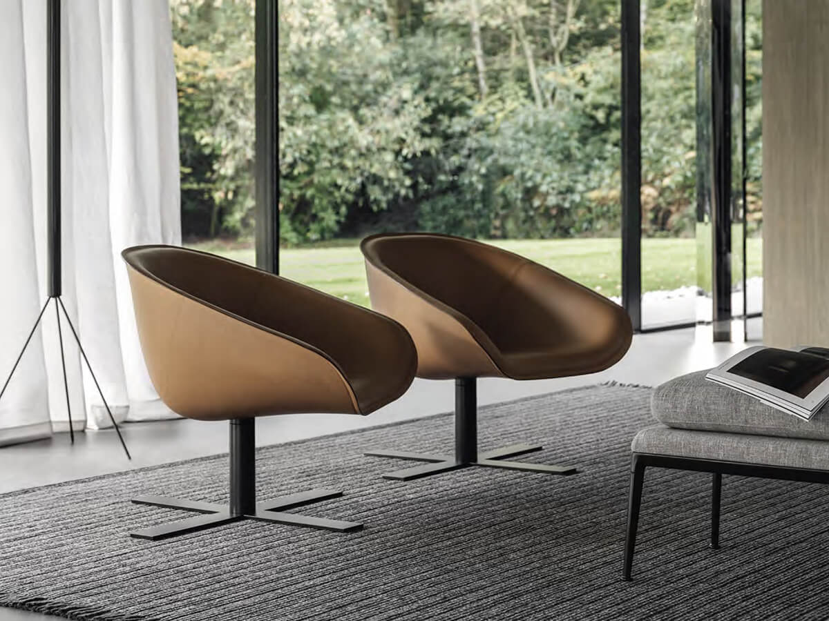 Ergonomic and enveloping shapes characterize this seat available in different configurations and variations. Ideal for living, dining and night areas, Mart is able to characterize any environment thanks to its ability to transform itself according to the desired needs, taste and style. The low back version is perfect for more convivial and formal settings, while the high back version maximizes the feeling of comfort and relaxation. The wooden or metal bases can be swivel cross, spoke or with regular fixed support. Each choice guarantees the quality and craftsmanship of B&B Italia, as well as the guarantee of a long-lasting product, capable of withstanding wear and the fashions of the moment.* Technical features: for the version with wooden base, the base finish is available only in smoked stained oak