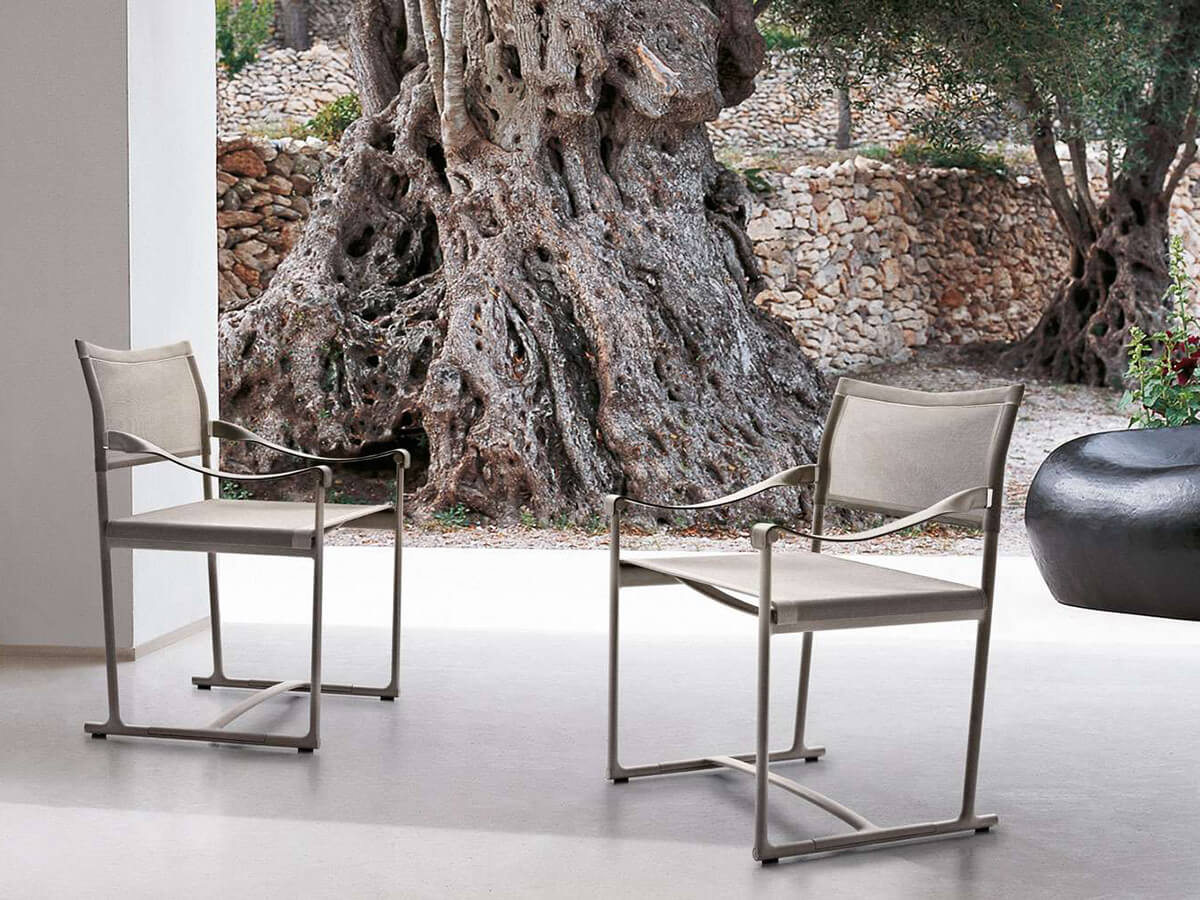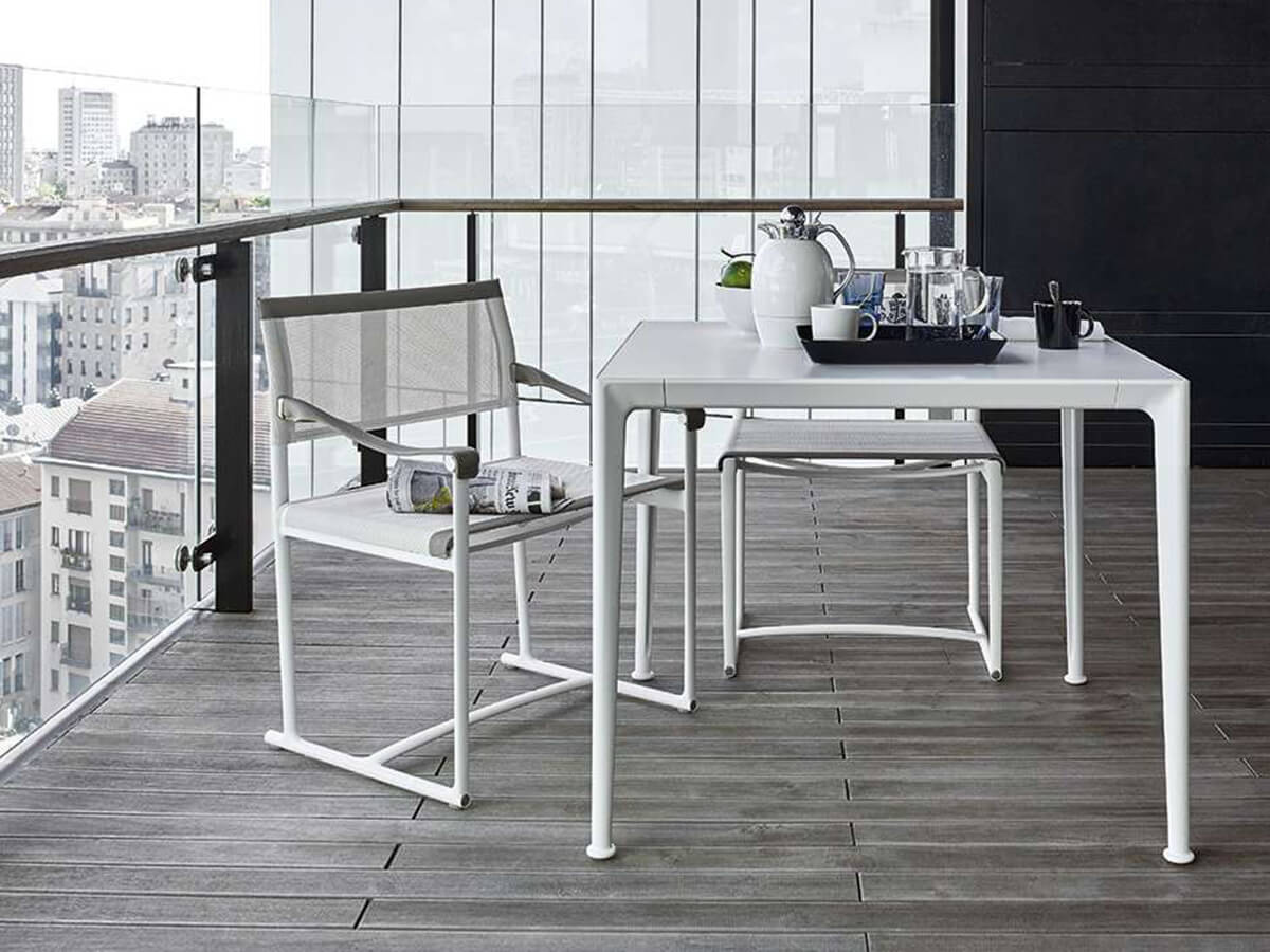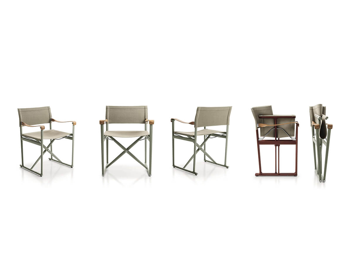 The Mirto collection offers numerous ideas for outdoor furniture, showing off assorted elements such as chairs, armchairs and loungers with reclining backs. The folding armchair re-elaborates the lexicon of the classic director's typology, with attention paid to the sartorial details and adding aesthetic refinements that enhance its value. In the declinations of tables, coffee tables and consoles, Mirto offers the same materials and colors so as to guarantee a more than complete coordinated. The elegance and strength of Mirto is also ensured by the use of the Styx mesh in Batyline® Canatex, precious and resistant to outdoor use as well as to the constant wear and tear of time.*Technical features:- version without armrests: not folding;- version with armrests: foldable