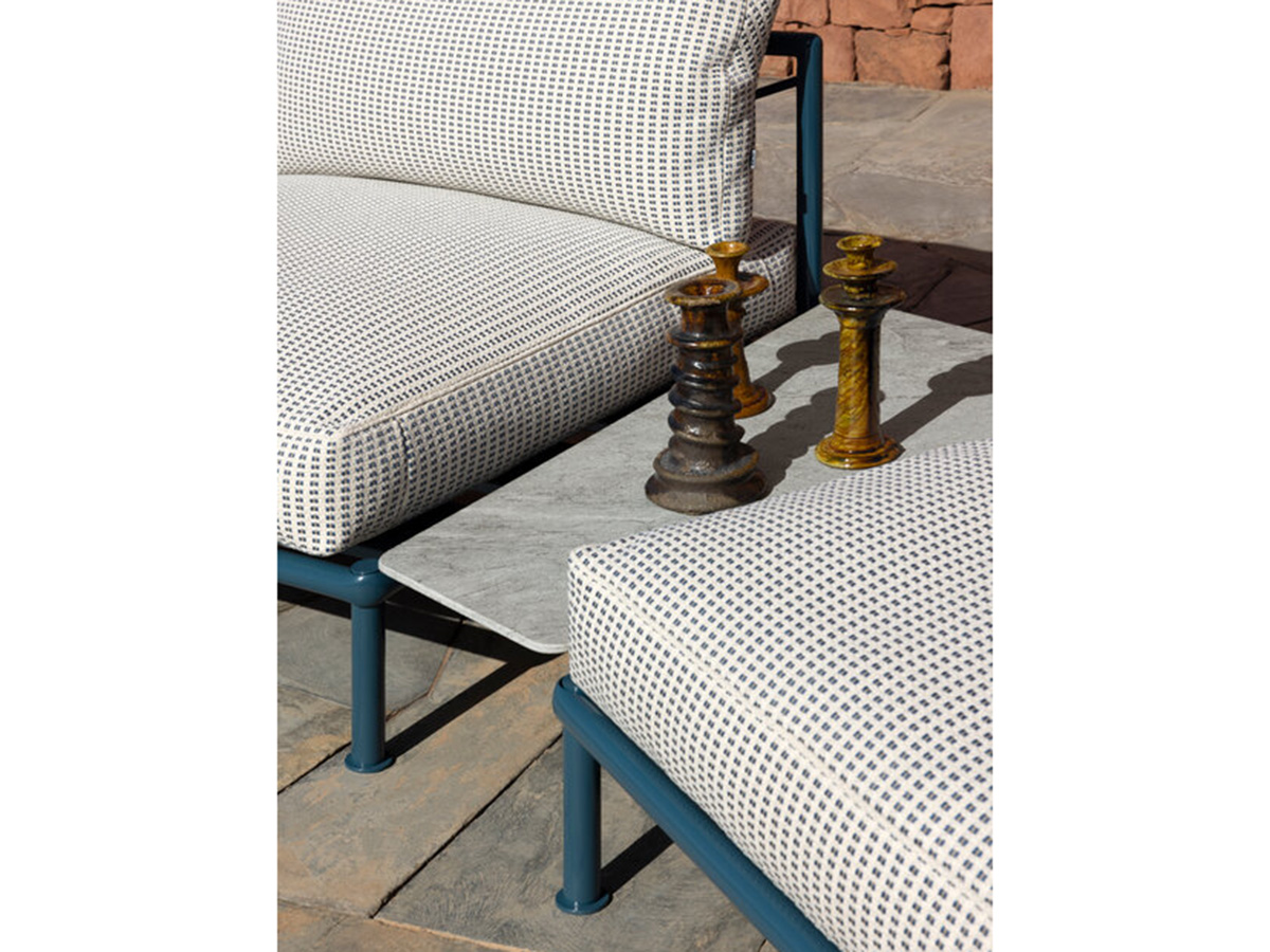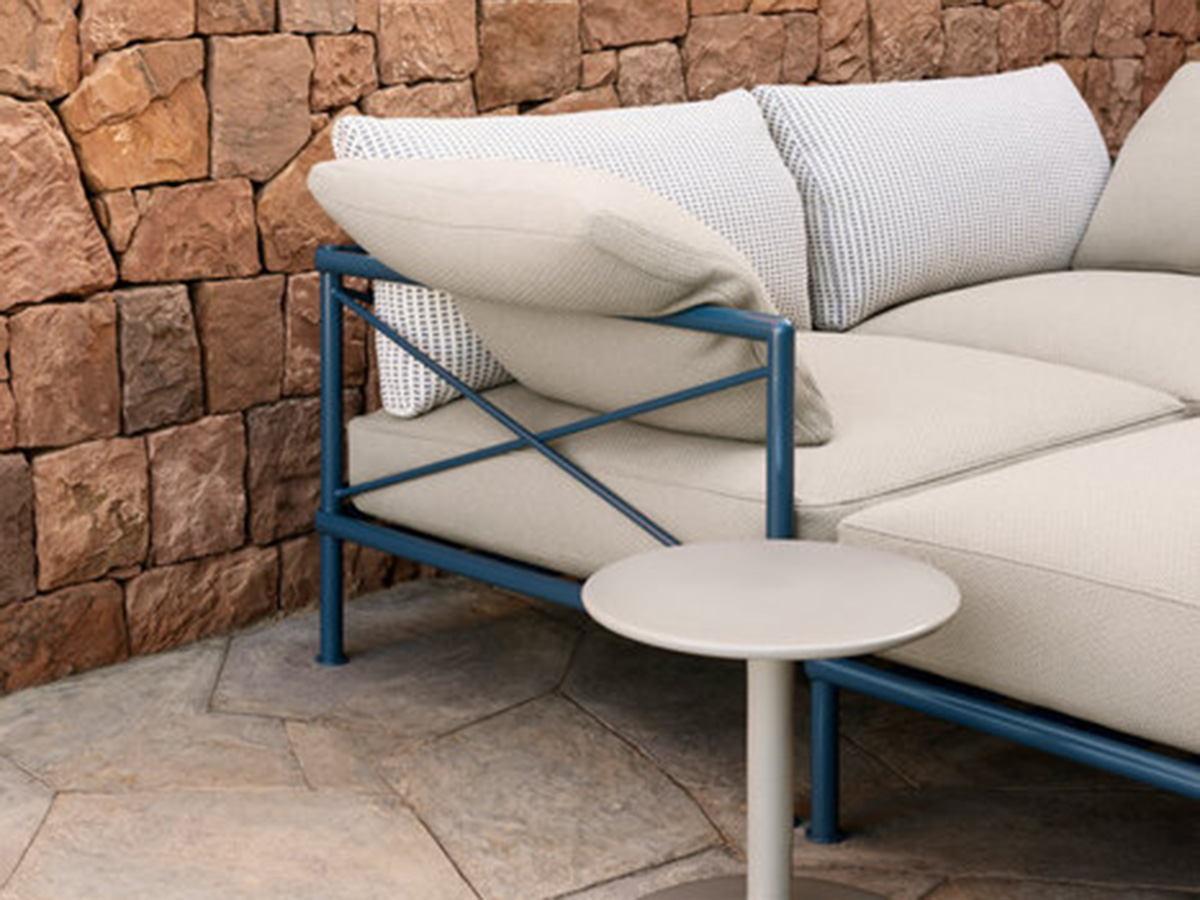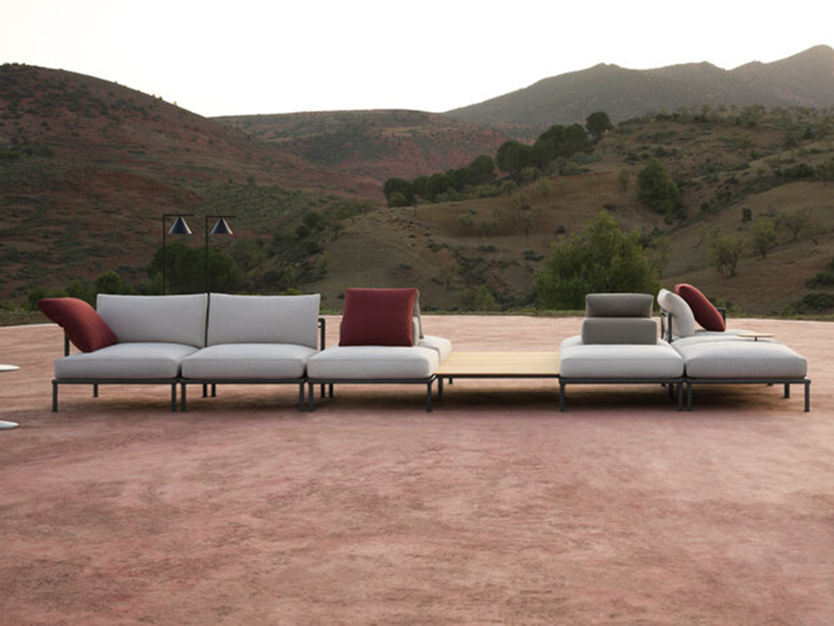 The Nooch sofa is part of a seating system created by Piero Lissoni and B&B Italia aimed at pursuing a dual intent: continuous modernization and sustainability in the outdoor sector. The result is a unique padded item, inspired by the tropical botanical garden of Nong Nooch in Thailand with a characteristic tubular structure in recycled aluminum which in turn is potentially infinitely recyclable. The design is simple and linear but does not lack artistic peculiarities such as the crossing points of the structural elements where an elegant elbow curve obtained by bending the tubulars stands out. Versatile and light also thanks to the thousand compositional potentials designed by B&B Italia, Nooch also features padding obtained from recycled materials, completely separable, which includes two layers of polyurethane with different densities and load-bearing capacity.