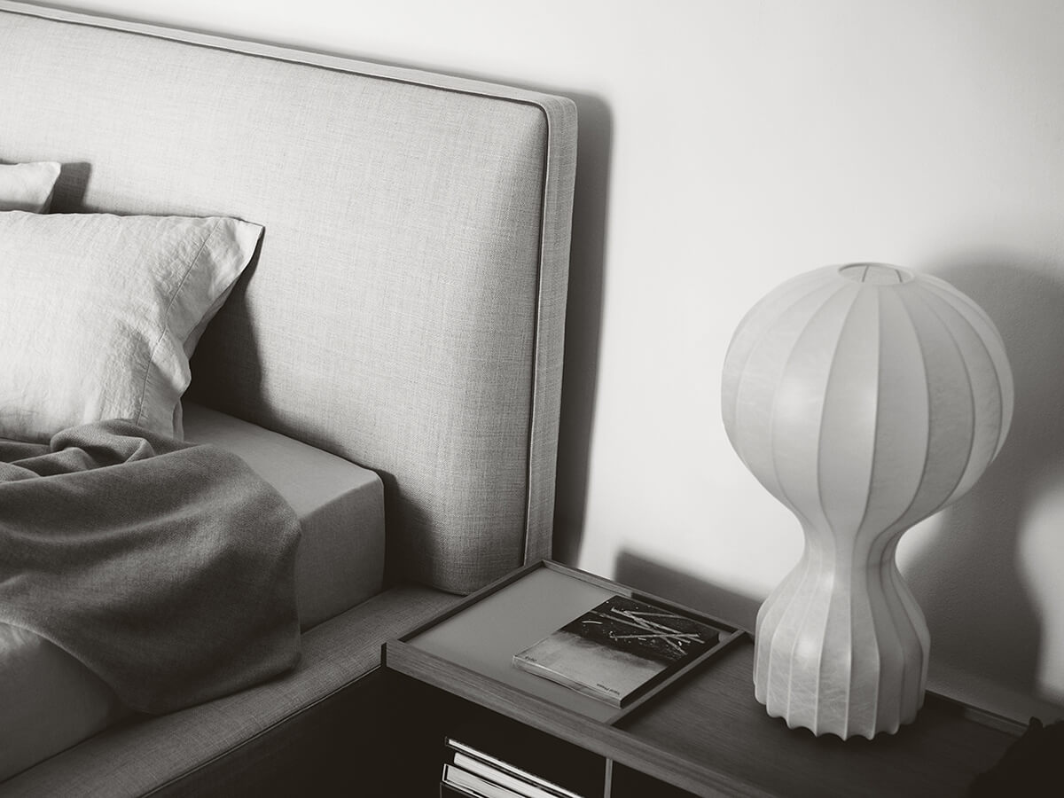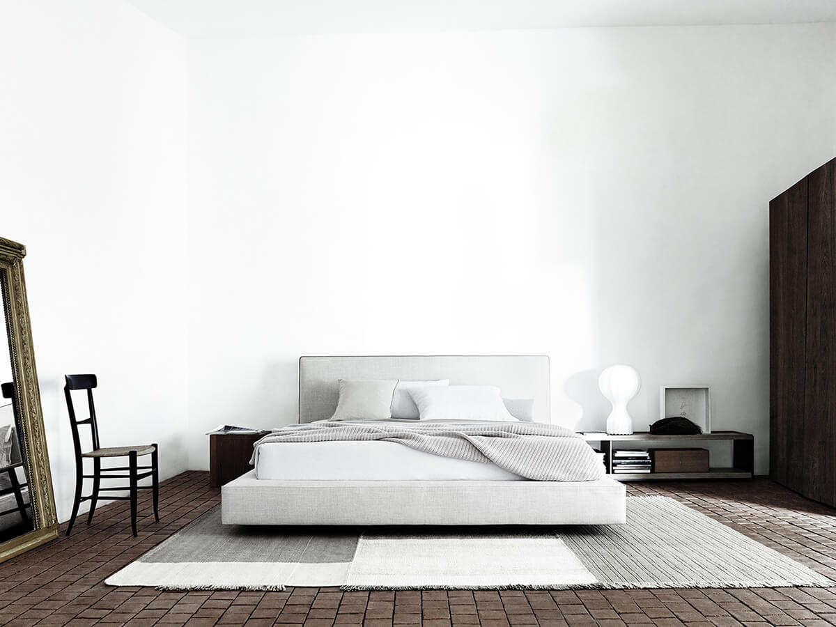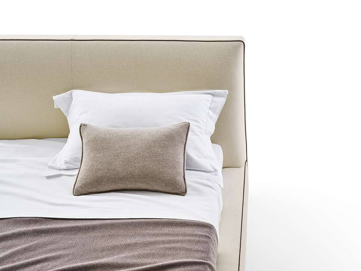Richard is a bed with large and generous shapes, capable of combining comfort and aesthetics in a single solution. Like the sofa of the same name, Charles features traits of high tailoring rich in details that enhance its value. A high end that runs along the perimeter and the stitching with the insertion of a raw edge are further prominent elements for a unique piece of furniture, of great effect and personality. The height of the side bands allows you to insert any type of support to the mattresses, from the base with metal frame to the wooden slats or springs, up to the base with manual mechanism. Available in different colors and finishes, Richard is associated with the numerous B&B Italia complementary proposals.