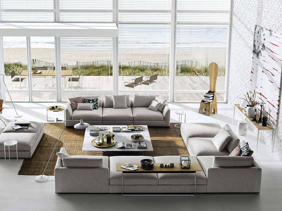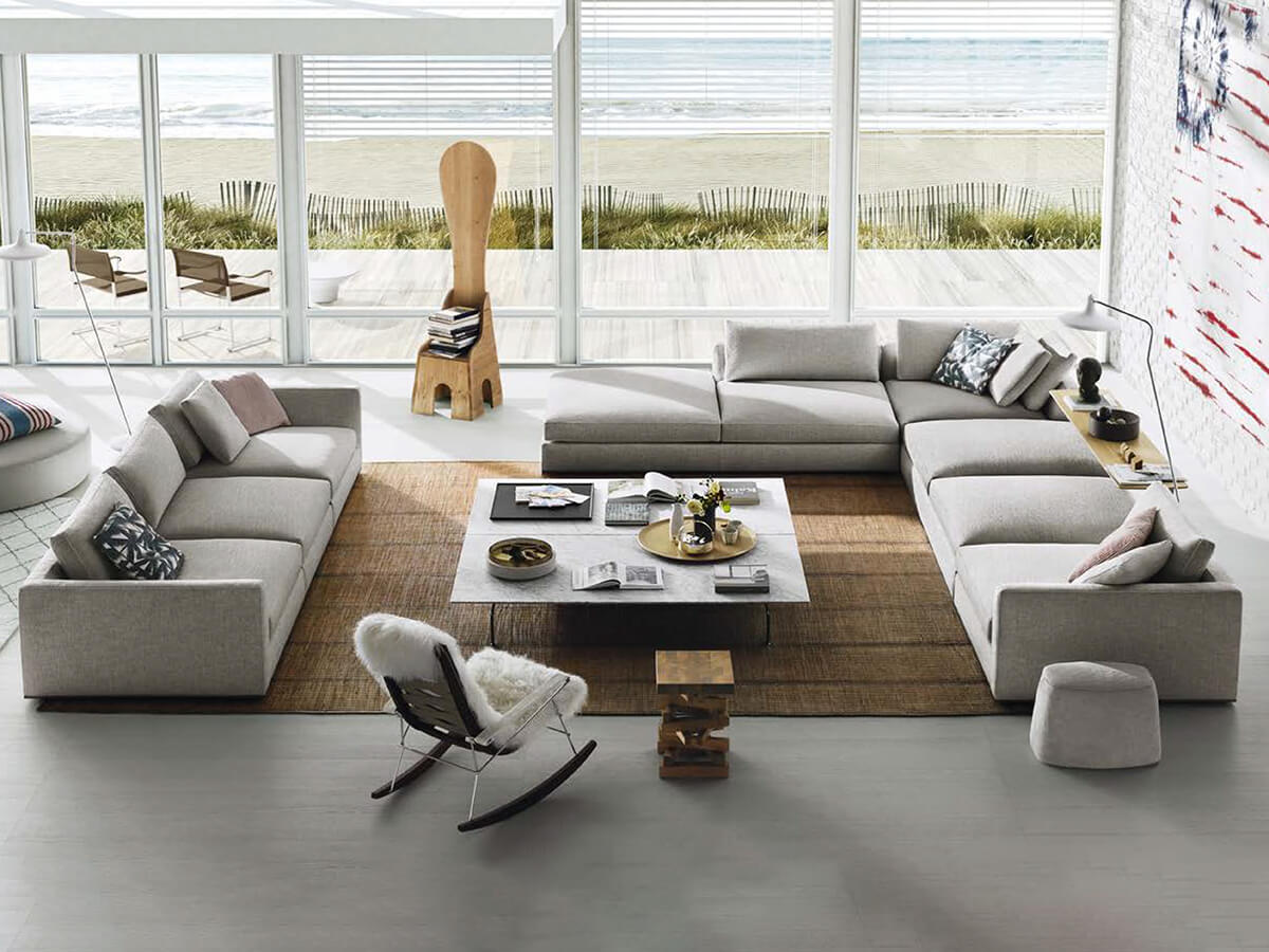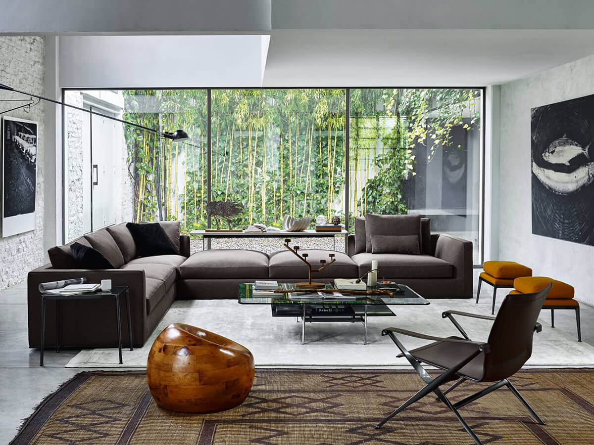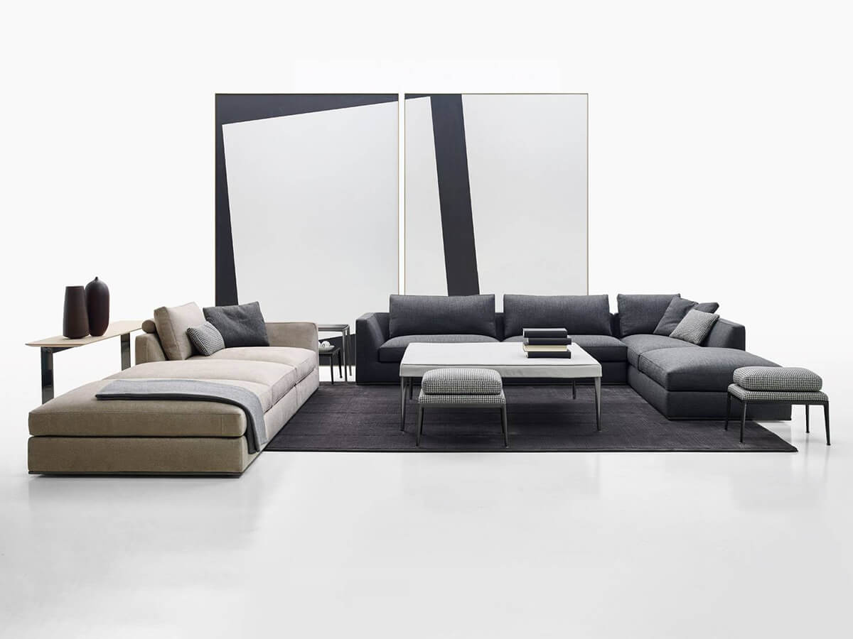 Richard is a seating system with a balanced design, capable of combining elegance and practicality in a highly effective whole. Starting from two different depths, Richard can be composed in numerous and original combinations, giving life to unique living spaces, capable of fully reflecting not only the taste, but also the style of contemporary living. The wide range of fabric and leather upholstery allows you to add a further distinctive touch, personalizing the choice of every detail down to the last detail. The possibility of using benches, poufs and chaise longues makes Richard extremely versatile. The padding in shaped polyurethane with different densities also guarantee maximum comfort during sitting.