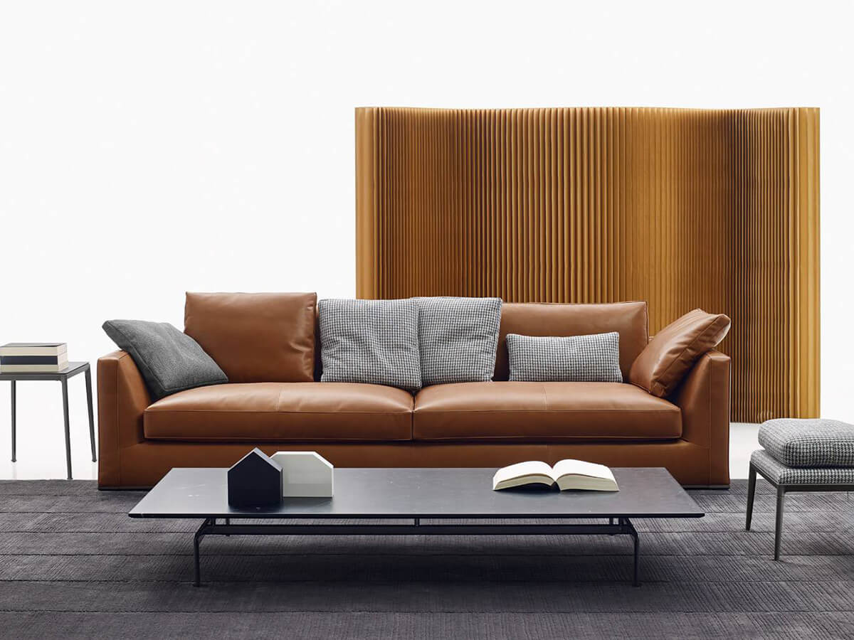 Richard is a seating system with a balanced design, capable of combining elegance and practicality in a highly effective whole. Starting from two different depths, Richard can be composed in numerous and original combinations, giving life to unique living spaces, capable of fully reflecting not only the taste, but also the style of contemporary living. The wide range of fabric and leather upholstery allows you to add a further distinctive touch, personalizing the choice of every detail down to the last detail. The possibility of using benches, poufs and chaise longues makes Richard extremely versatile. The padding in shaped polyurethane with different densities also guarantee maximum comfort during sitting.
