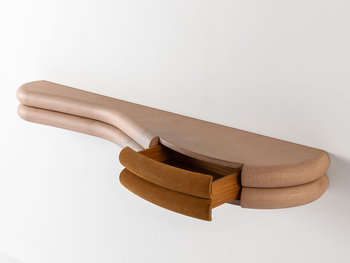 The Out of Line collection by Bieke Casteleyn is divided into numerous aspects of contemporary furnishings, focusing on the different declinations of the dining and living room table, including numerous variations to better fit within the domestic space. The Out of Line shelf once again embodies the company's intent to create nuances and variations of a product that adapts to different domestic situations but which can also be transformed into an artistic homage to the design itself. Its versatile nature, soft by definition, guarantees optimal performance, classifying Out of Line furniture as a unique, high-class expedient. The concrete finish also guarantees maximum durability over time.