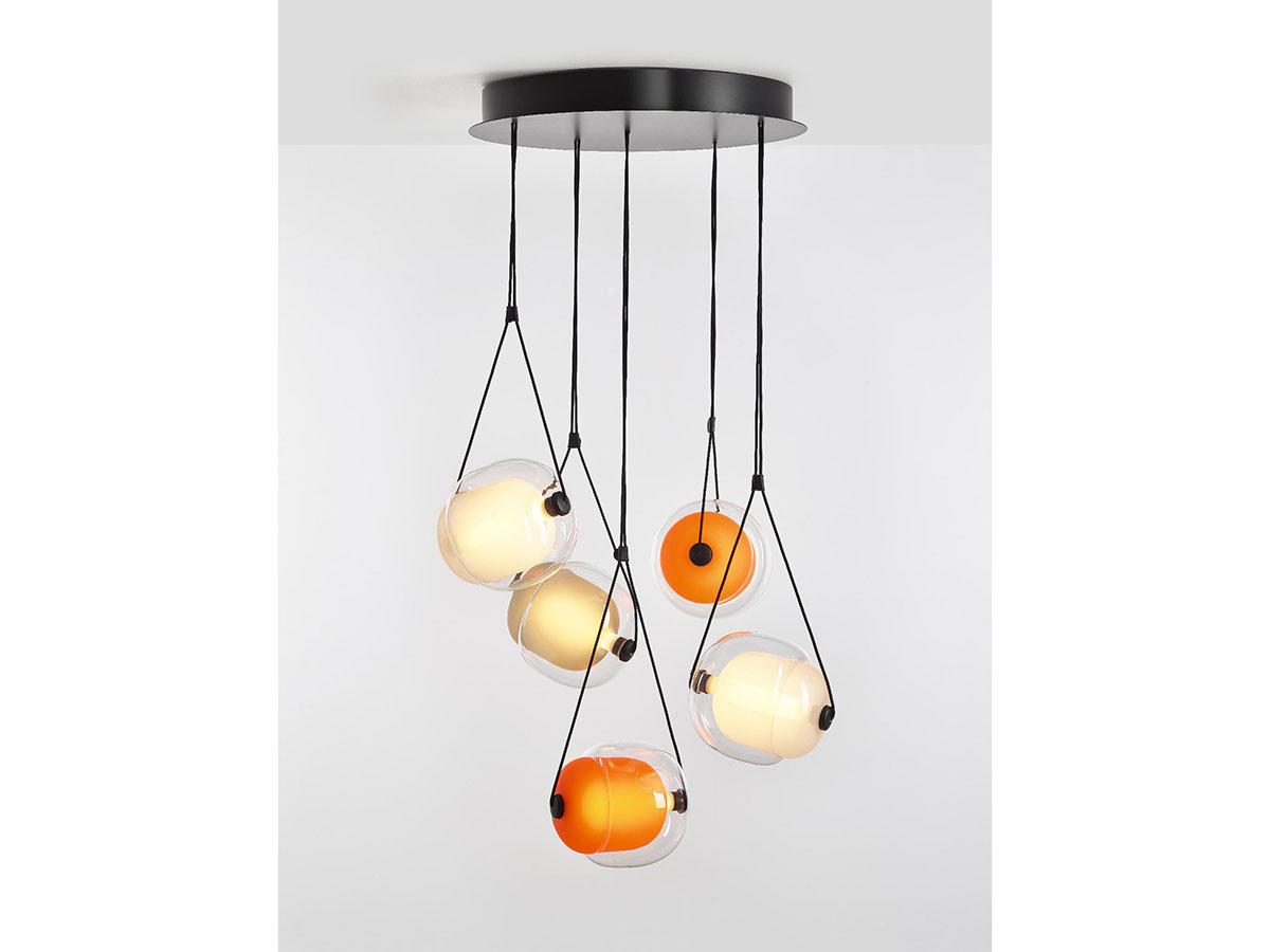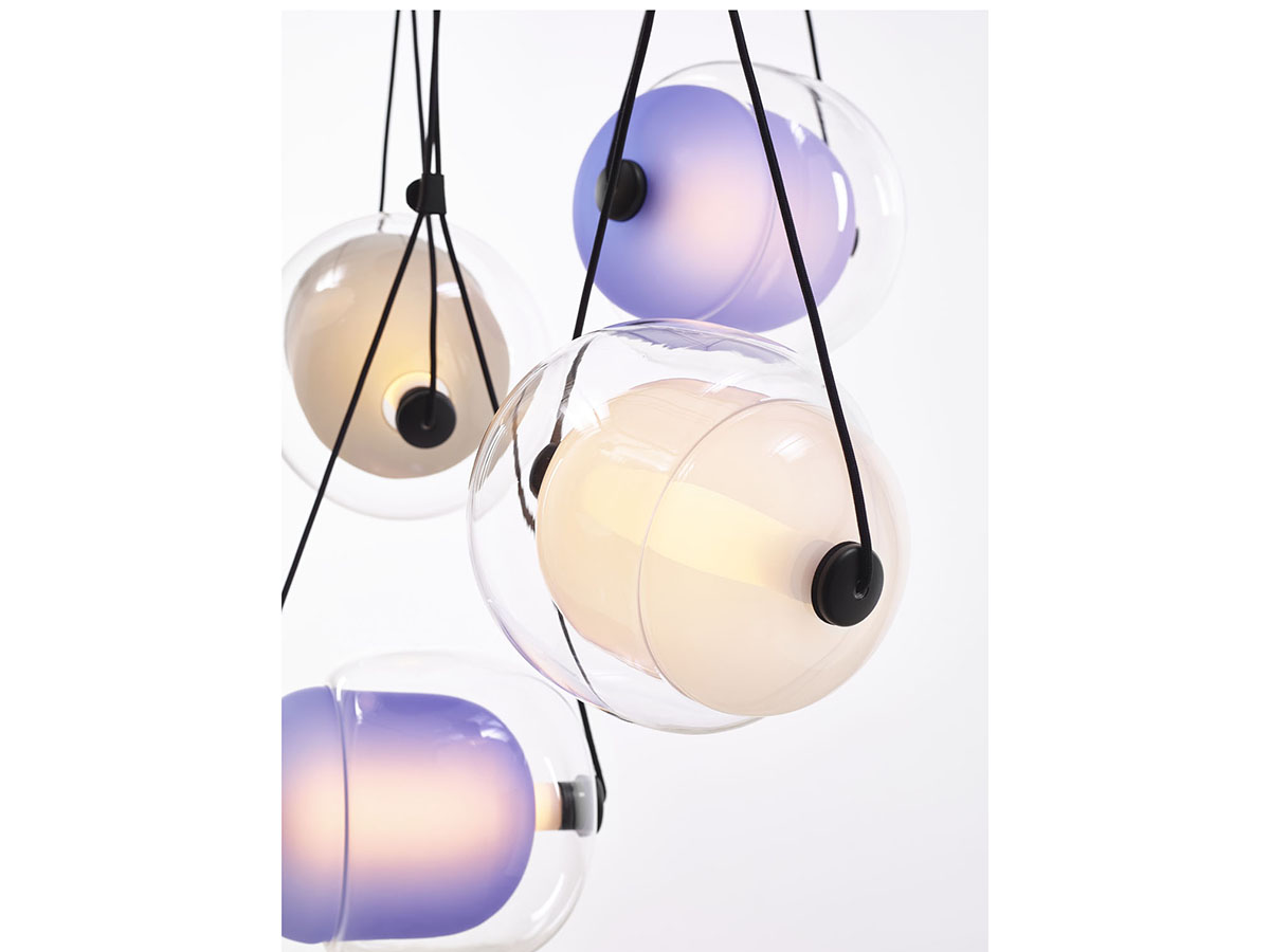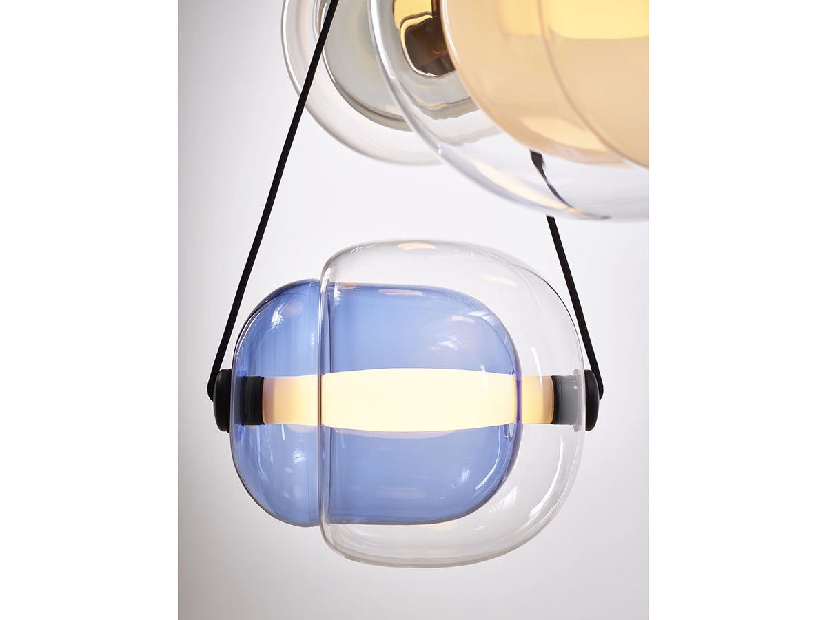 Brokis, brand of original and quality lighting, offers the Capsula suspension lamp, designed by the designer Lucie Koldova. Two blown glass capsules intersect each other crossed by the tubular LED light source. The wooden terminals support the suspension straps which also hide the power cable and allow the inclination of the lamp to be varied as desired during assembly. The ceiling rose is in matt white or black painted metal. Available in various combinations of colors and finishes, Capsula is also available in sets of three or five diffusers to adapt to any design need in both residential and public or contract contexts.