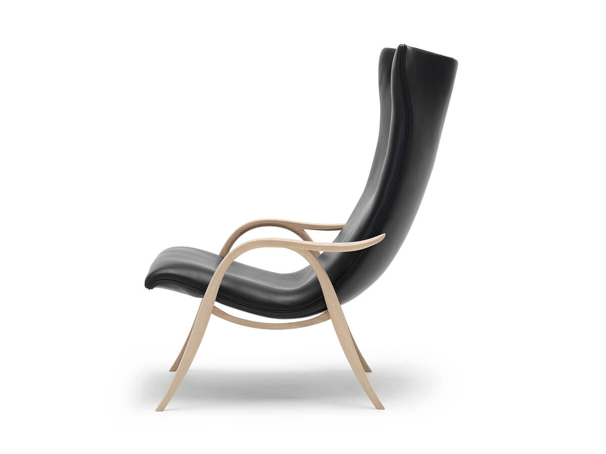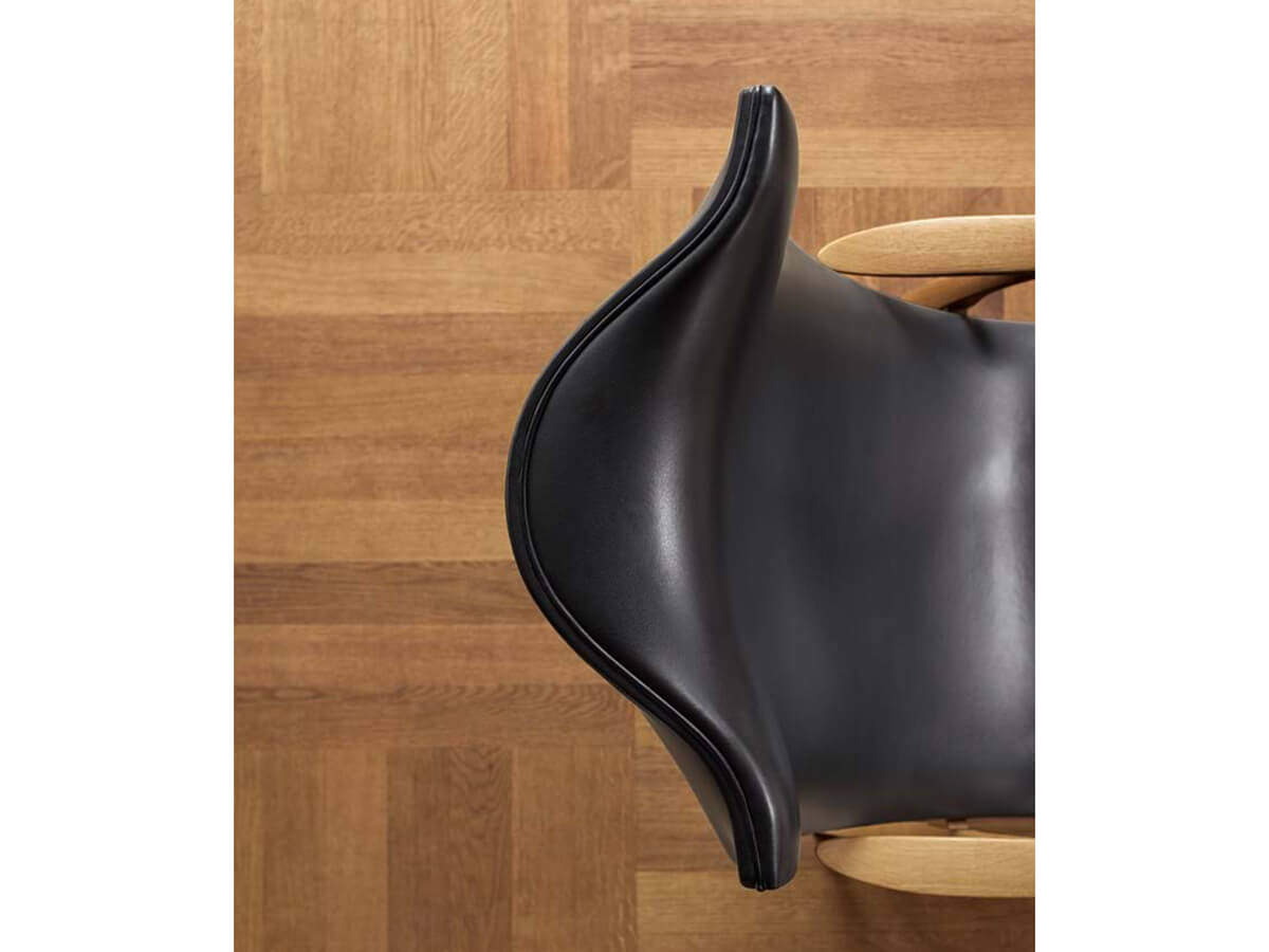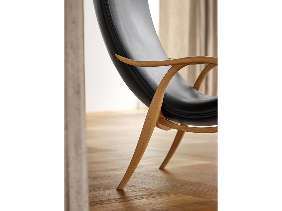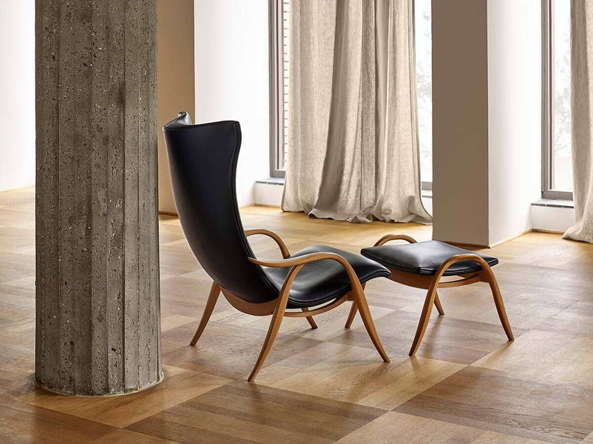 With its high and slender backrest, the FH429 Signature Chair by Carl Hansen & Søn is a graceful oasis of comfort. Like many of the best creations of the Carl Hansen brand, it is a reproduction of a historic model, designed and produced in only 20 pieces in 1954 by the esteemed cabinetmaker Frits Henningsen. Sinuous and harmonious curves outline its shape, as in the delicate hollow on the top of the leather-covered backrest that comfortably accommodates the head. Wooden legs and armrests also have a particularly supple and dynamic silhouette. The FH430 pouf can be associated with the FH429 armchair for a relaxing seat.