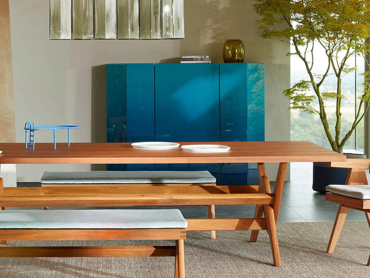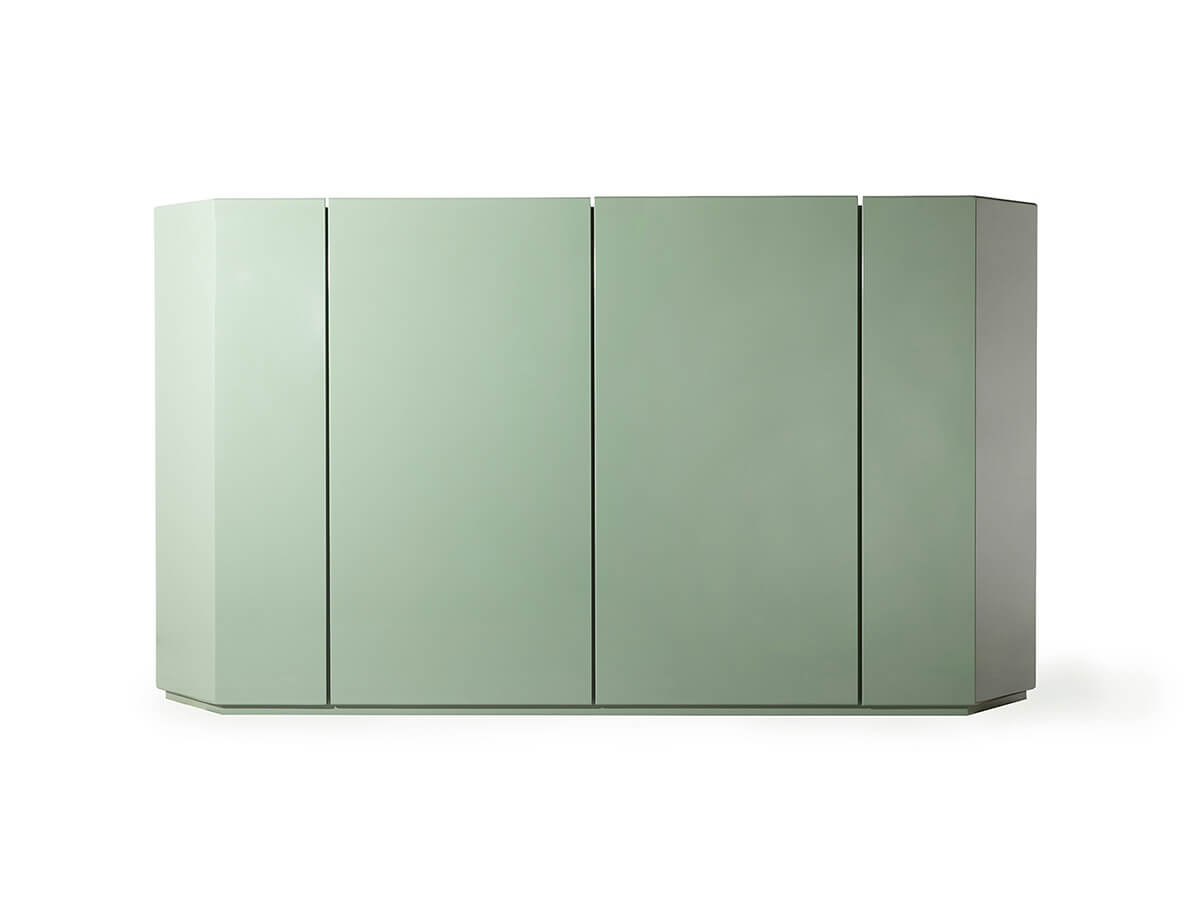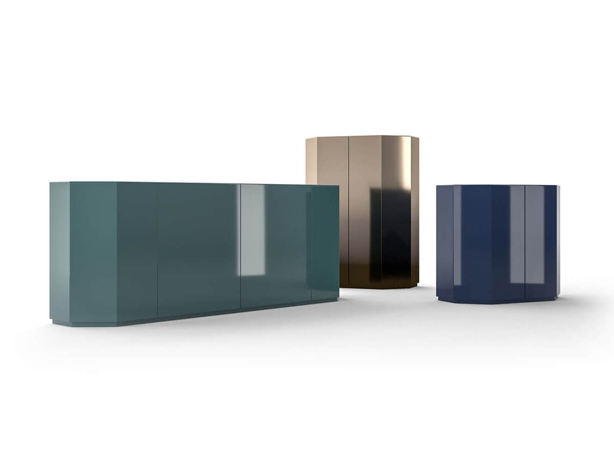The Bramante sideboard is conceived as a storage unit with extremely modern lines. It has become the symbol of the collection Ultrarazionale by Cassina thanks to the illusory contrast with the classical inspiration – leading Kazuhide Takahama to design the sketch in 1974 – and to the adoption of an ancient technique of industrial lacquering. Bramante stands out in any home areas due to its strong architectural appearance and exceptional versatility, enriched even more after its revision in 2019 which kept unchanged the shape and the sizes, though renovating deeply the building frame by removing the modules. The final result is a more contemporary structure, rich and bright thanks to the new inner Led lighting and continuous glass shelves. The handmade finishings of Bramante enhance the surfaces with several layers of lacquering which highlight its amazing artistic quality and preciousness.