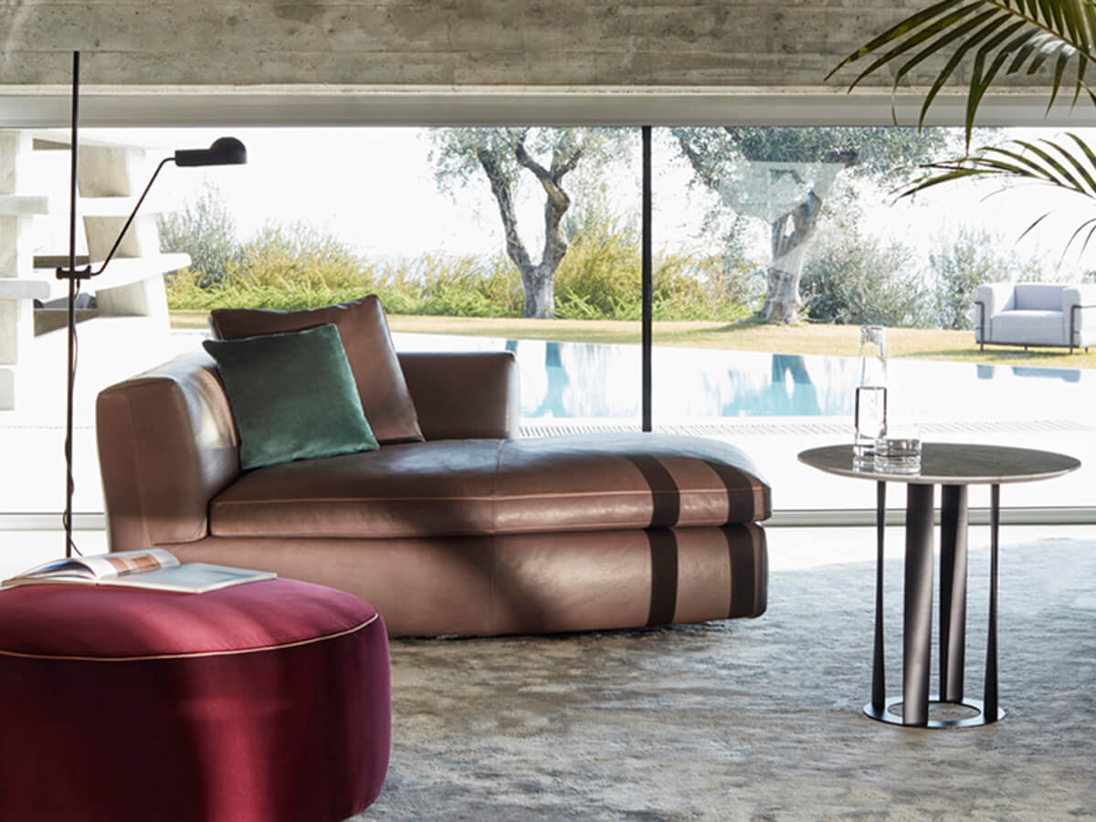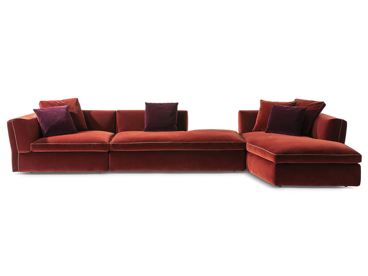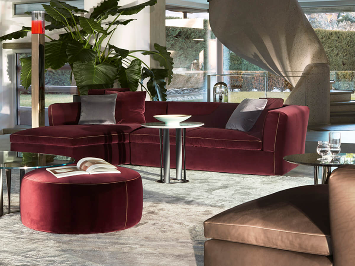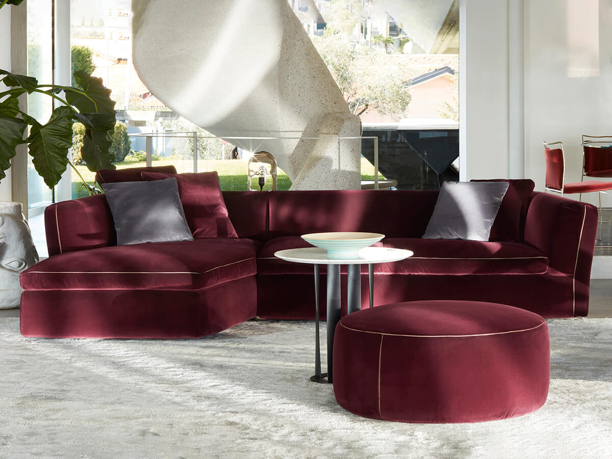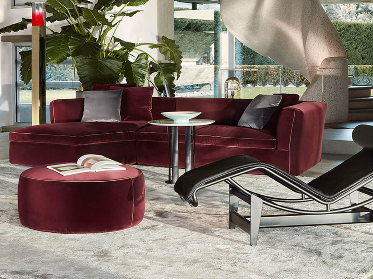 Designed by Rodolfo Dordoni with Cassina, Dress Up! is a tribute to the couture and also to the high quality design whose Cassina refers to in the production of its own items. Elegant details and precious stylistic choices come together with the wide choice of finishings and combinations, creating a modular sofa where these features find their best expression. The stichings around the backrest and armrest realize a refined pleat, linked to the base of the sofa through a zip, as it is for a dress. The model is enriched by a gros-grain profile around the seat cushions. Geometrical lines and asymmetrical elements of integrated chaise longues, combined poufs and matching coffee tables contribute to create always new solutions.