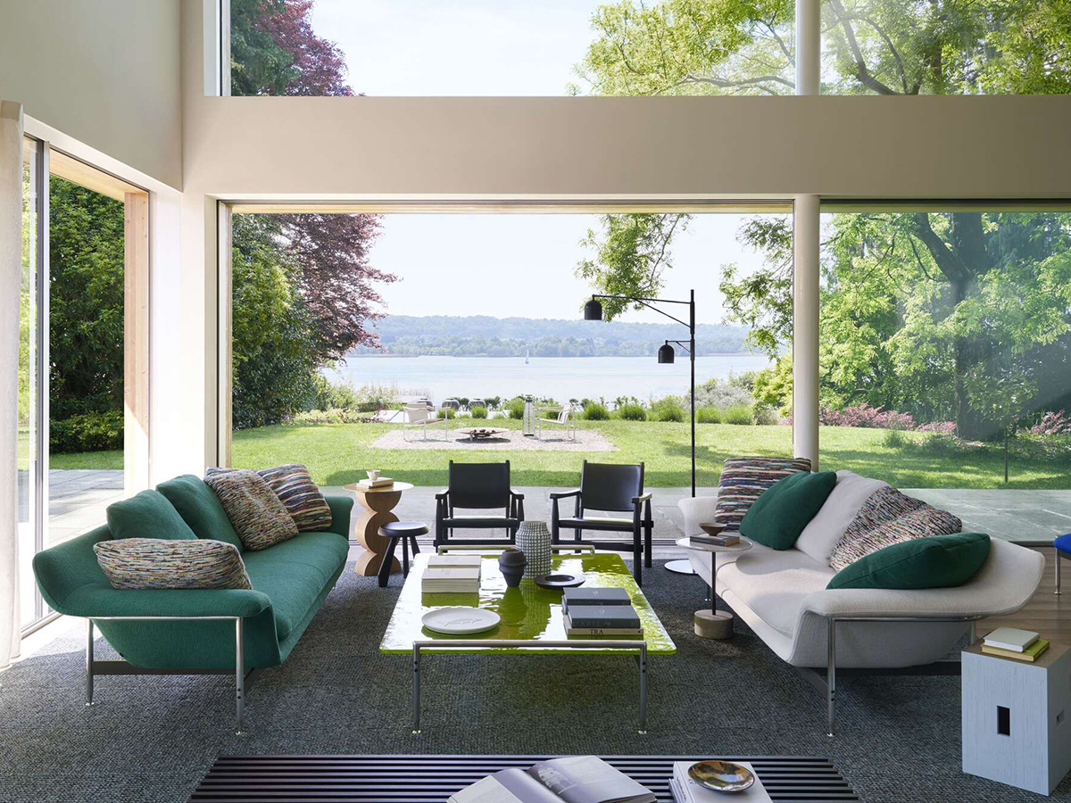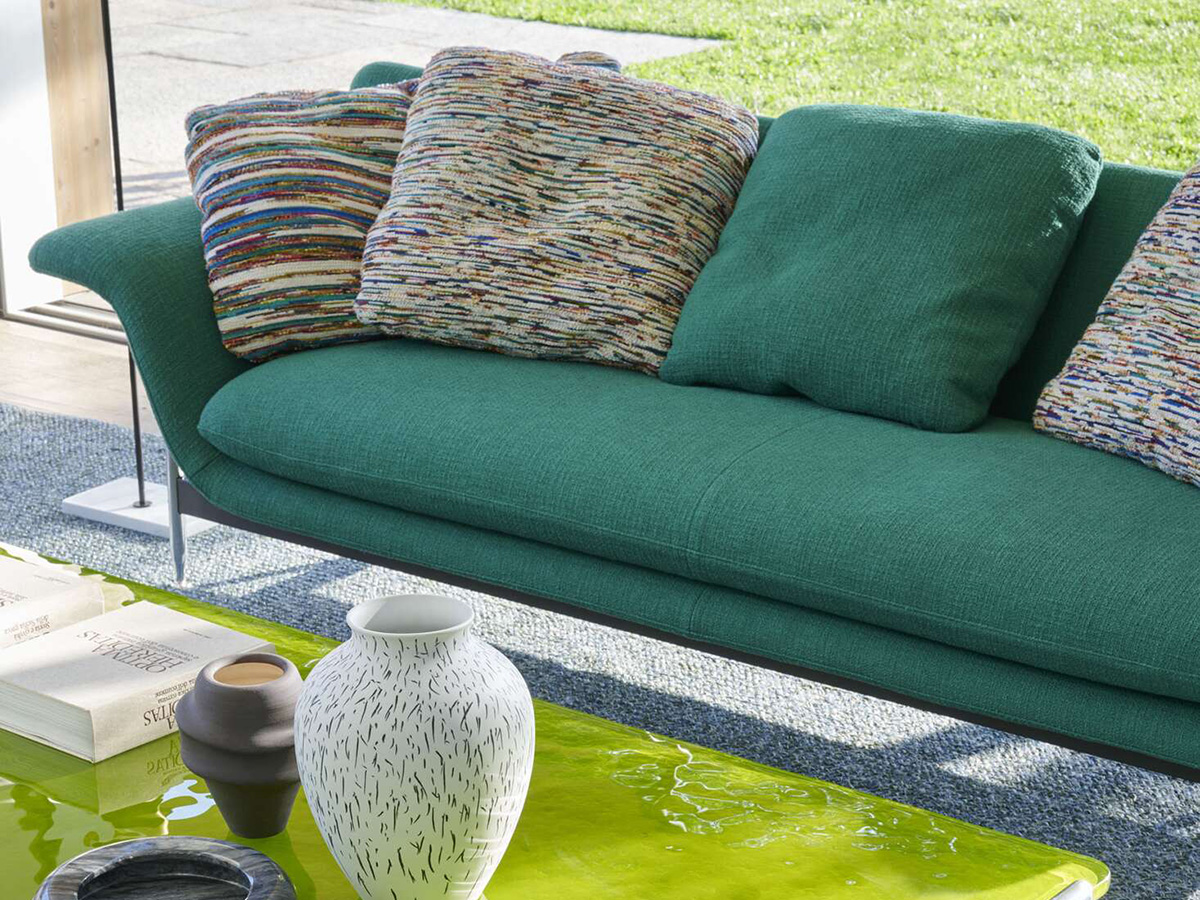 A modular system of great value and stylistic beauty, born from the creative power of Cassina and the strong intention of giving life to a real line of modules that can be used as single sofas or combined with corner combinations, thus guaranteeing great flexibility within the space living. Among the numerous creations of Esosoft it is impossible not to mention the benches, poufs and the series of tables. The structure is made of aluminium, solid enough to support a body with an organic silhouette on which numerous back cushions are placed. The shape of this sofa recalls the taste and style of 1960s furnishings, but is completely different in the materials used and in the contemporary techniques, deliberately innovative to guarantee perfect results in every aspect. Ideal in the indoor space of lounges and living rooms, it can also be used in numerous public spaces.