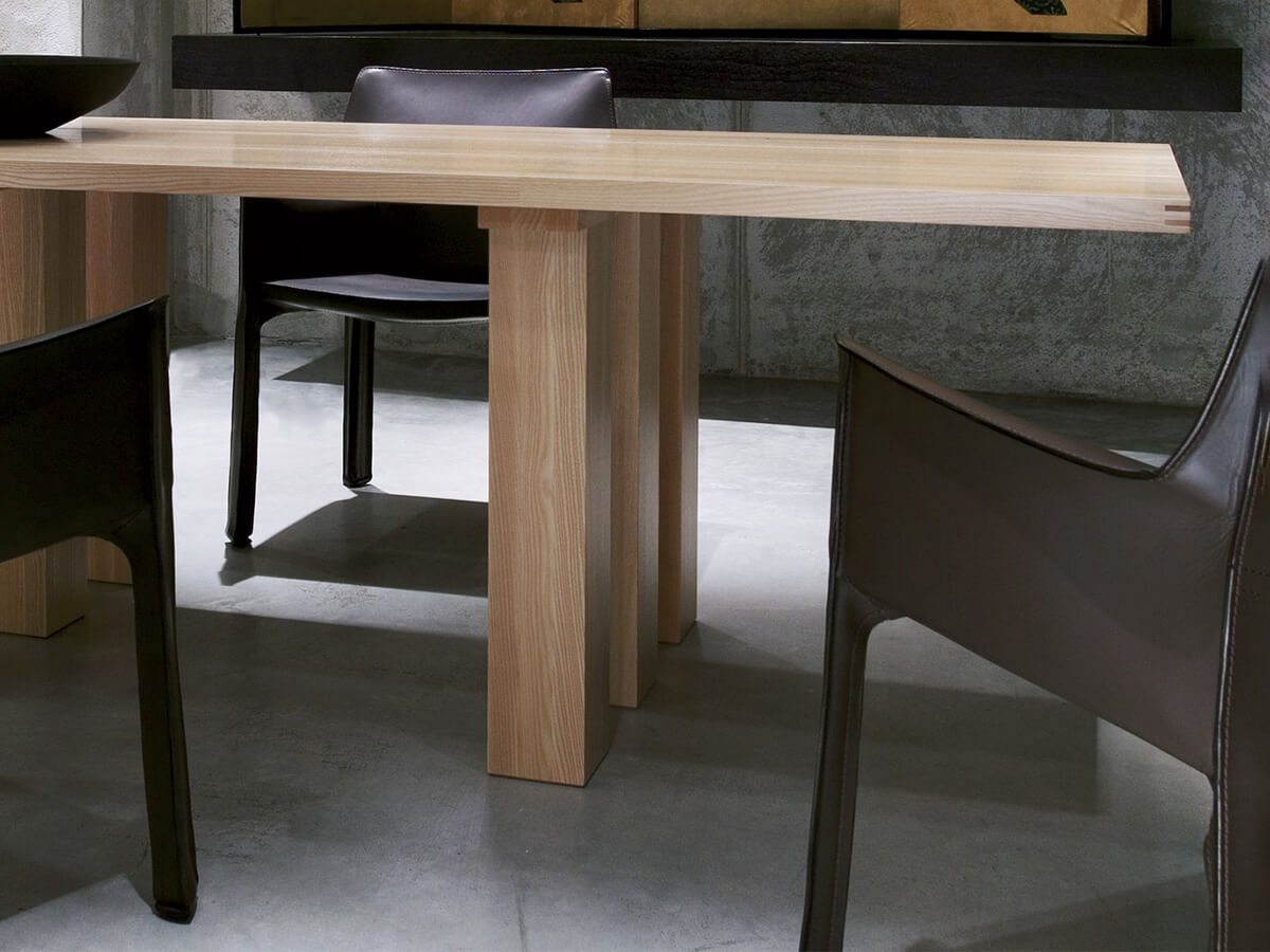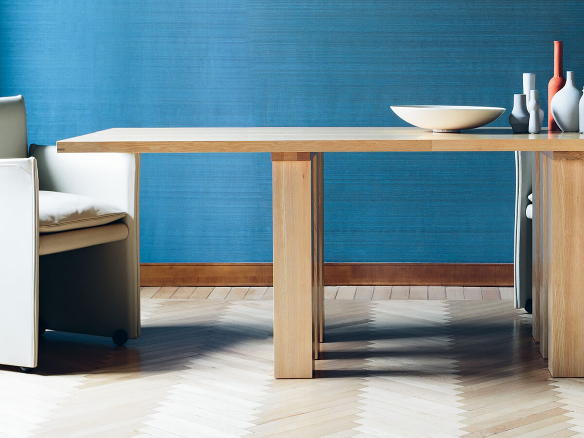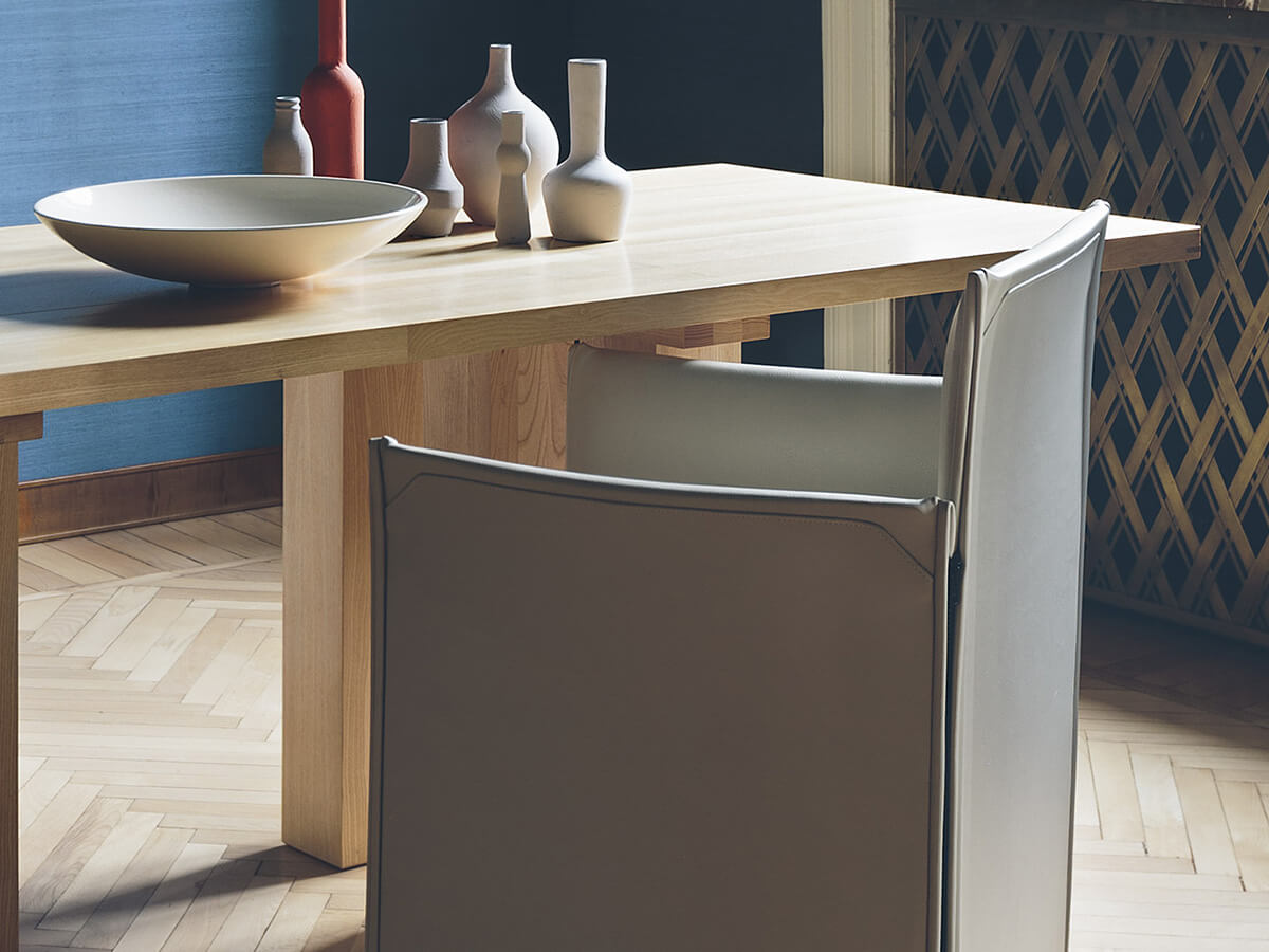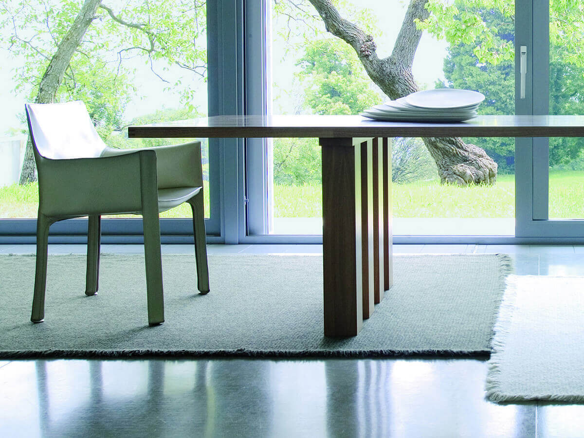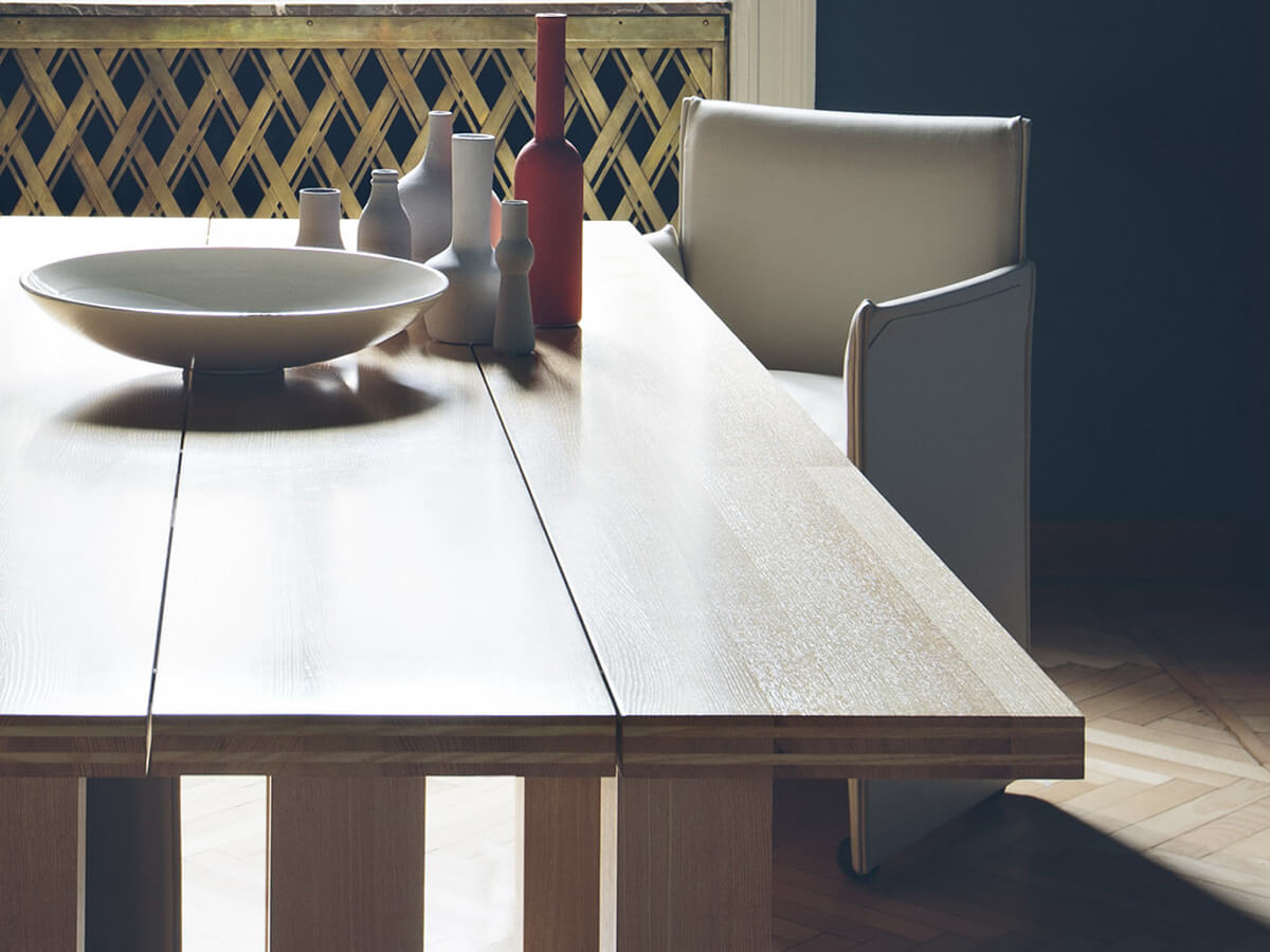 Over the architecture and the design, La Basilica table was born to demonstrate that both large and small works have more in common what the eye and human reason can explain. Related to a series of tables among which La Corte, Il Colonnato, La Loggia and so on stand out, La Basilica of 1878 has a solid and well-conceived structure that maintains the perspective clarity of the architecture and the elementary refinement embodied by the legs similar to pillars and the top devoid of embellishments. Mario Bellini's project was born on the occasion of the “Libro dell’Arredamento”, and since then it has been repeated several times in a vast assortment of variants and finishes suitable for following the taste of their time.