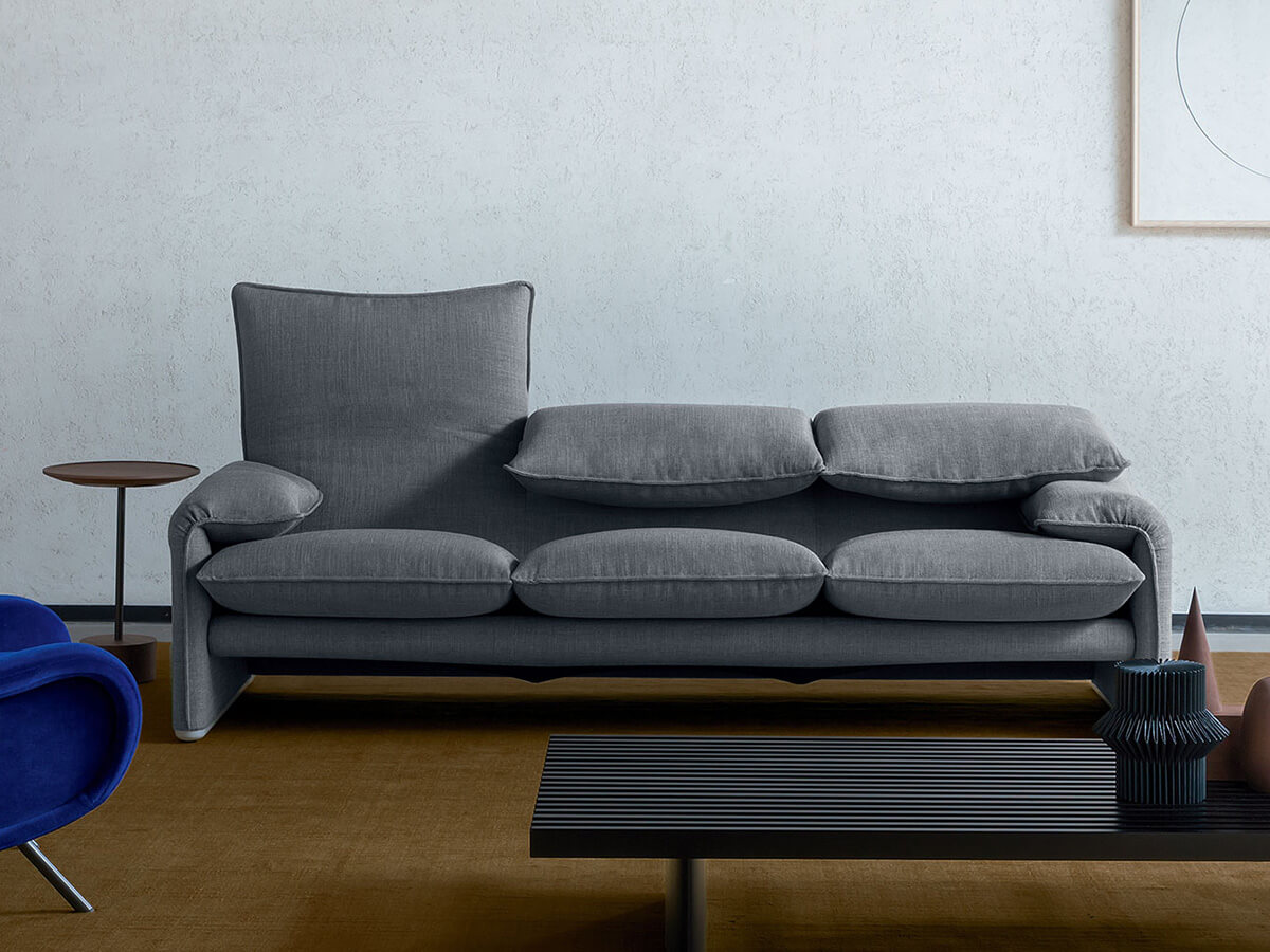 The sofa 675 Maralunga by Cassina is a masterpiece expressing the craftsmanship of Italian design and the extreme versatility for its use in any living space. Created by Vico Magistretti’s idea to insert a bicycle chain inside the headrest in order to adjust the height, it has been marking the style since 1973 with new editions and revisions. On the occasion of the company’s 40th anniversary, Cassina presented Maralunga 40 and later Maralunga 40s, marked by the possibility to fully remove the fabric cover. The recent aesthetic restyle turned it into a more attractive model, offering new ideas to the demands of contemporary design.