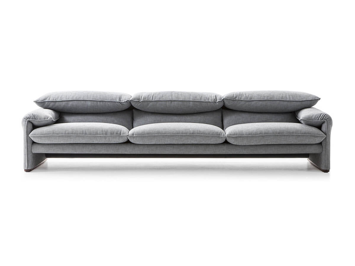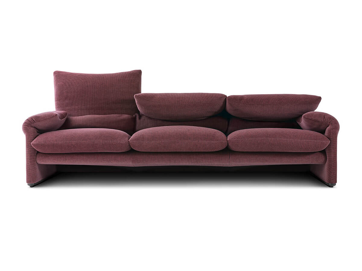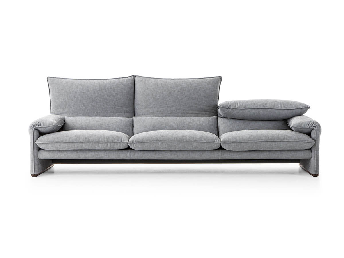 Forty five years since its creation and its manufacture by Cassina, the sofa Maralunga by Vico Magistretti is still considered a timeless icon. The ergonomic conformation and the cleverness of the adjustable system for the height of the backrests contribute to blend the aesthetic value and stylistic innovation in a unique piece. Following its success, Cassina decided to add two models in Maralunga collection: Maralunga Maxi and Maraluna Maxi 40. The version Maxi is available only with perimetral stitching and it offers new sizes for two and three seaters sofas. The depth has been increased to give you a more comfortable seat, able to meet the most demanding requirements.