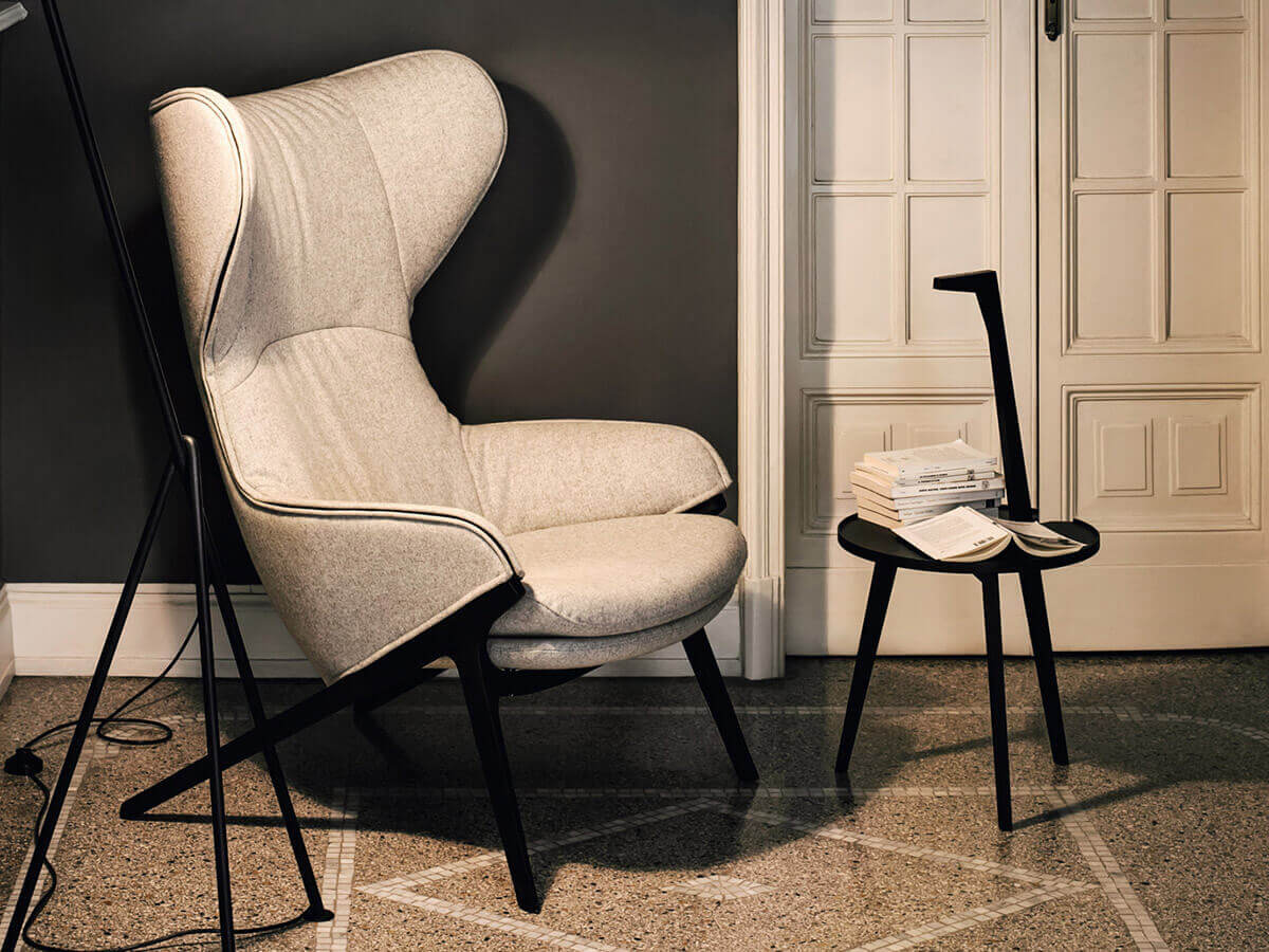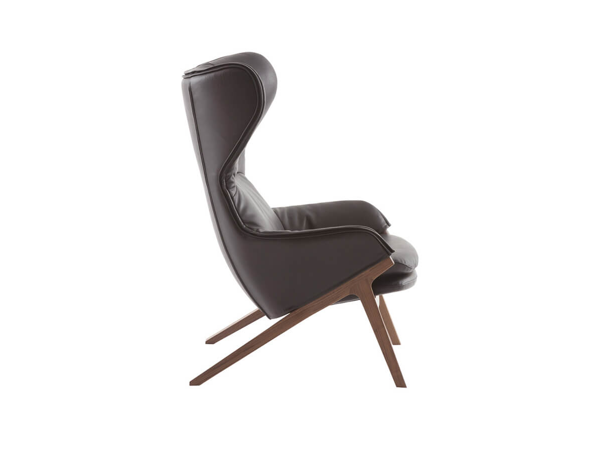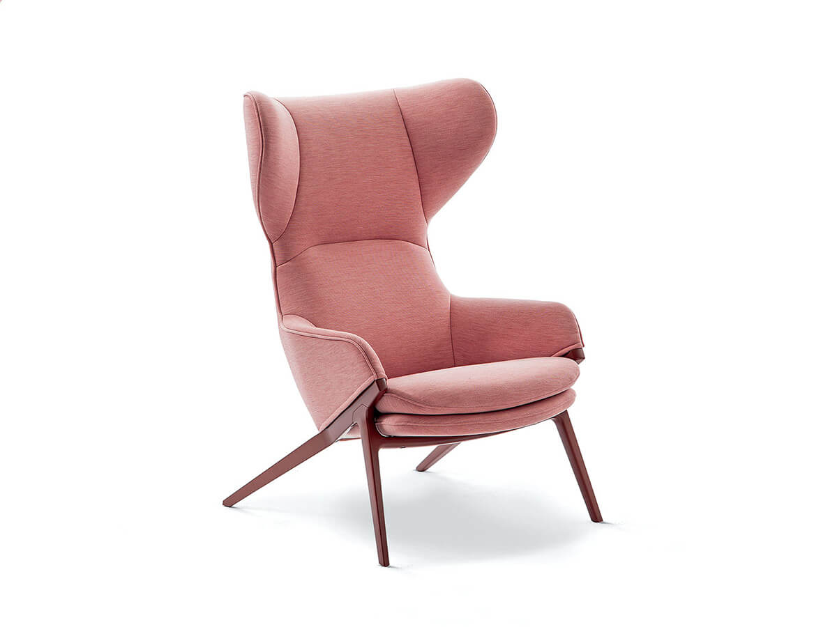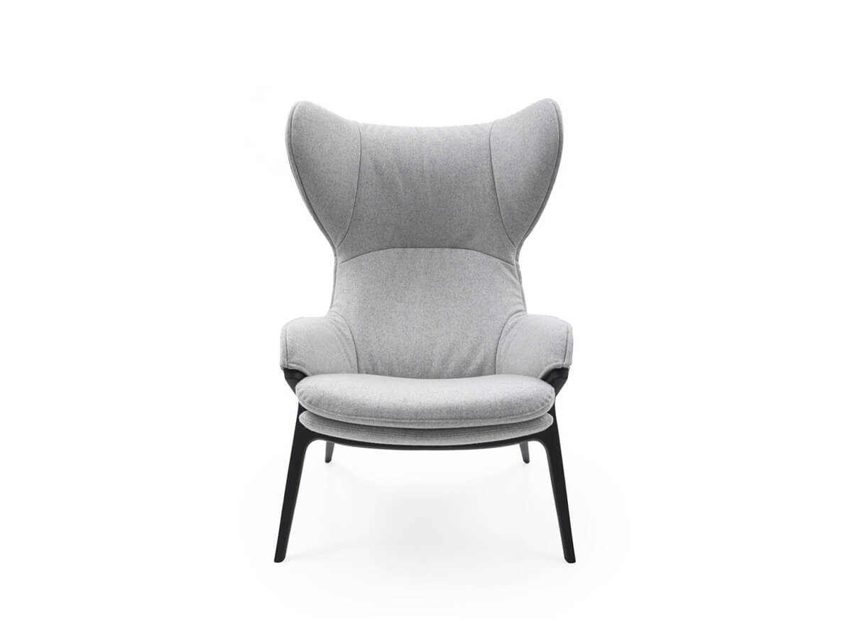 The P22 armchair by Cassina comes from the classical and sophisticated lines of the bergères, with high backrests and shaped paddings abel to give an idea of extreme coziness and comfort. Designed by Patrick Norguet, its core is composed by a metal structure inserted in a polyurethane-injected foam shell. The base in aluminium or solid wood matching the junctions without any metallic parts makes it an object of quality without equal, as always trademark of Cassina production. Available with or without lateral headrests, the armchair is suitable for a wide range of covers which can be removed by means of a practical zip. Lastly, Cassina offers a large choice of fabric and leather covers for this model.