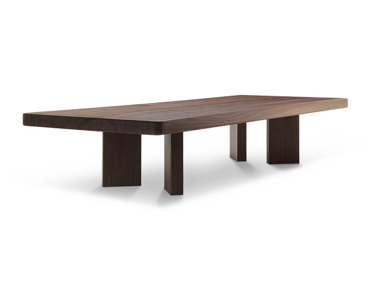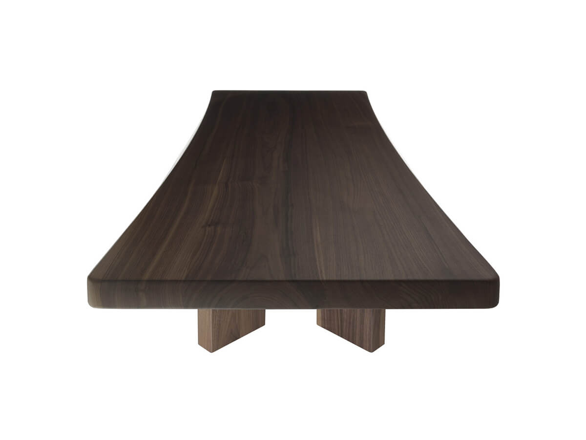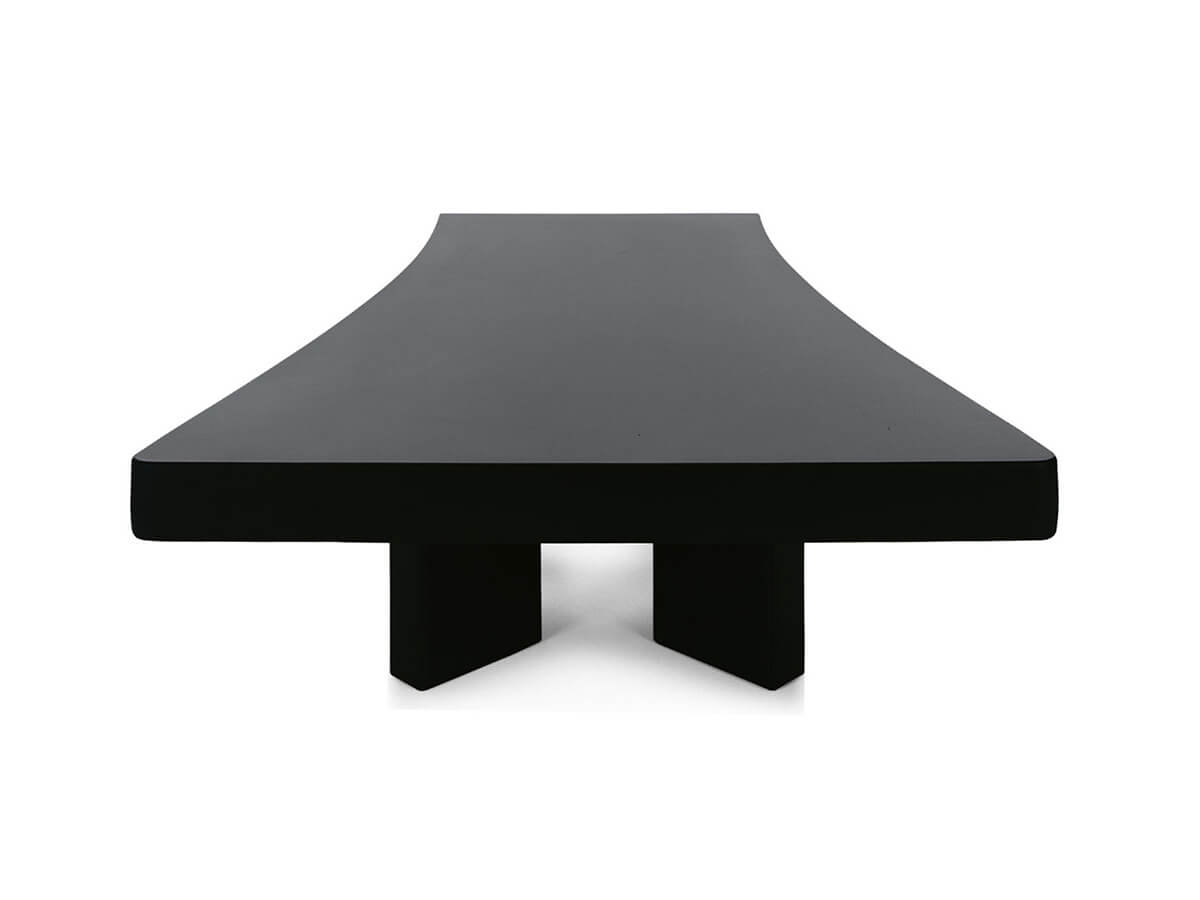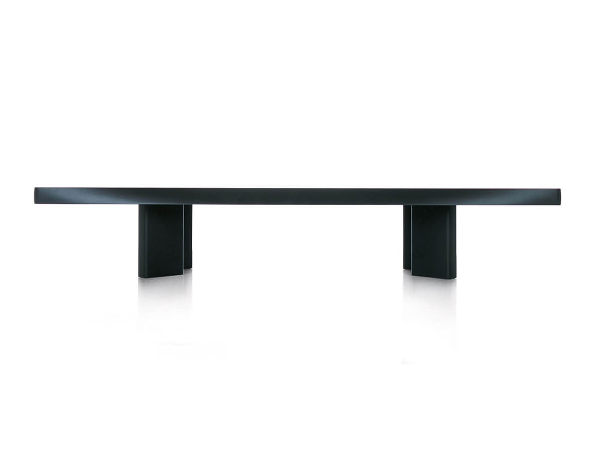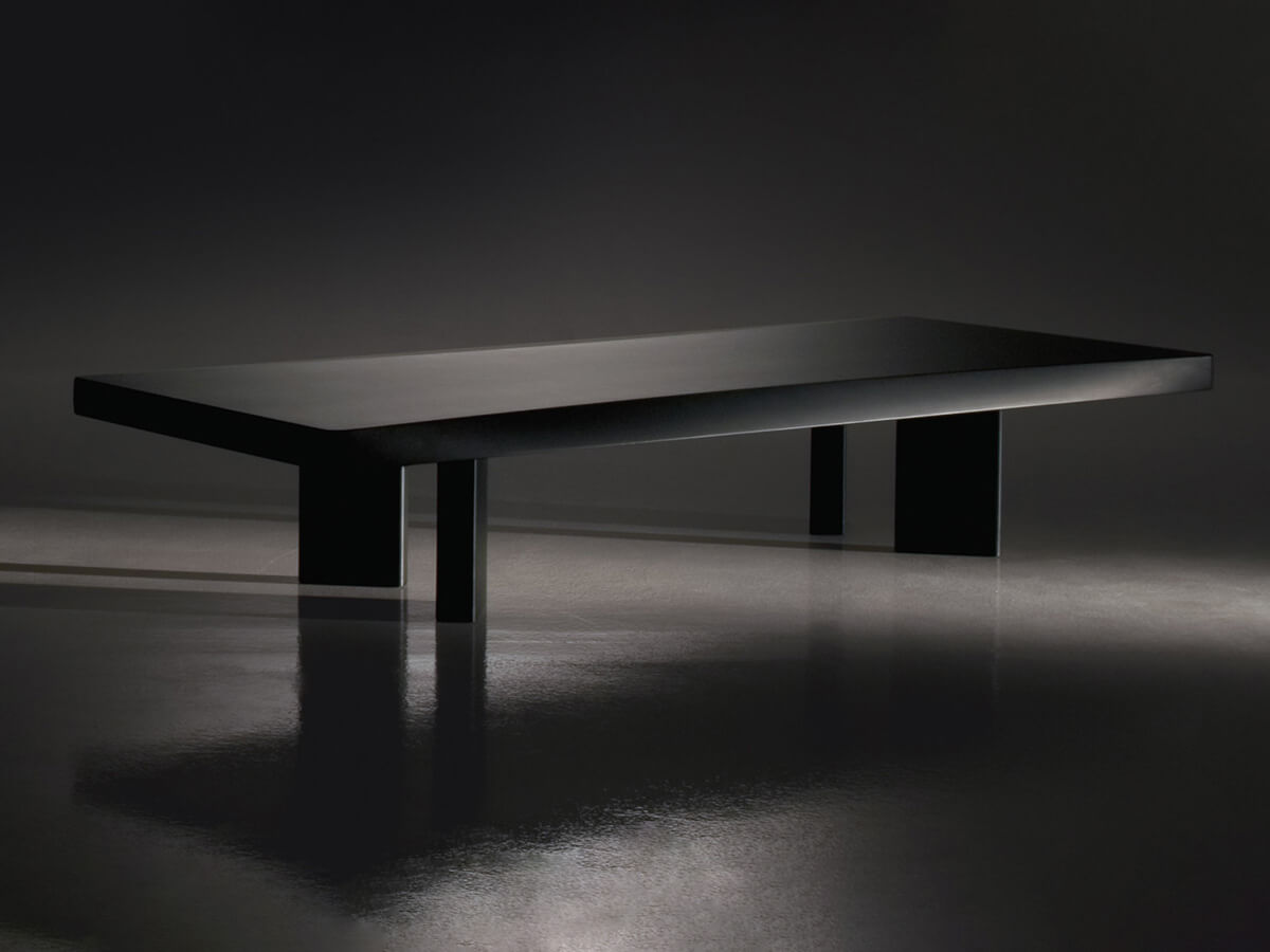 Designed by Charlotte Perriand in 1969, the Plana coffee table draws inspiration from the impact made on Perriand when she saw a colossal rock, whose enormous weight was undercut by the way the waves had eroded it, rendering it smooth. The model derived here is therefore characterized by extreme technological complexity combined with an almost pure formal simplicity, without superfluous elements. The abundant thick table-top and the concave edges enhance a feeling of considerable lightness which places in clear contrast the figurative impact of the design and the rational perception of the real weight. Originally it was designed for the Japanese Embassy in Paris, today Plana stands fully as an element that can be adapted to any environment, perfect for anyone who desires formal purity and material concreteness.