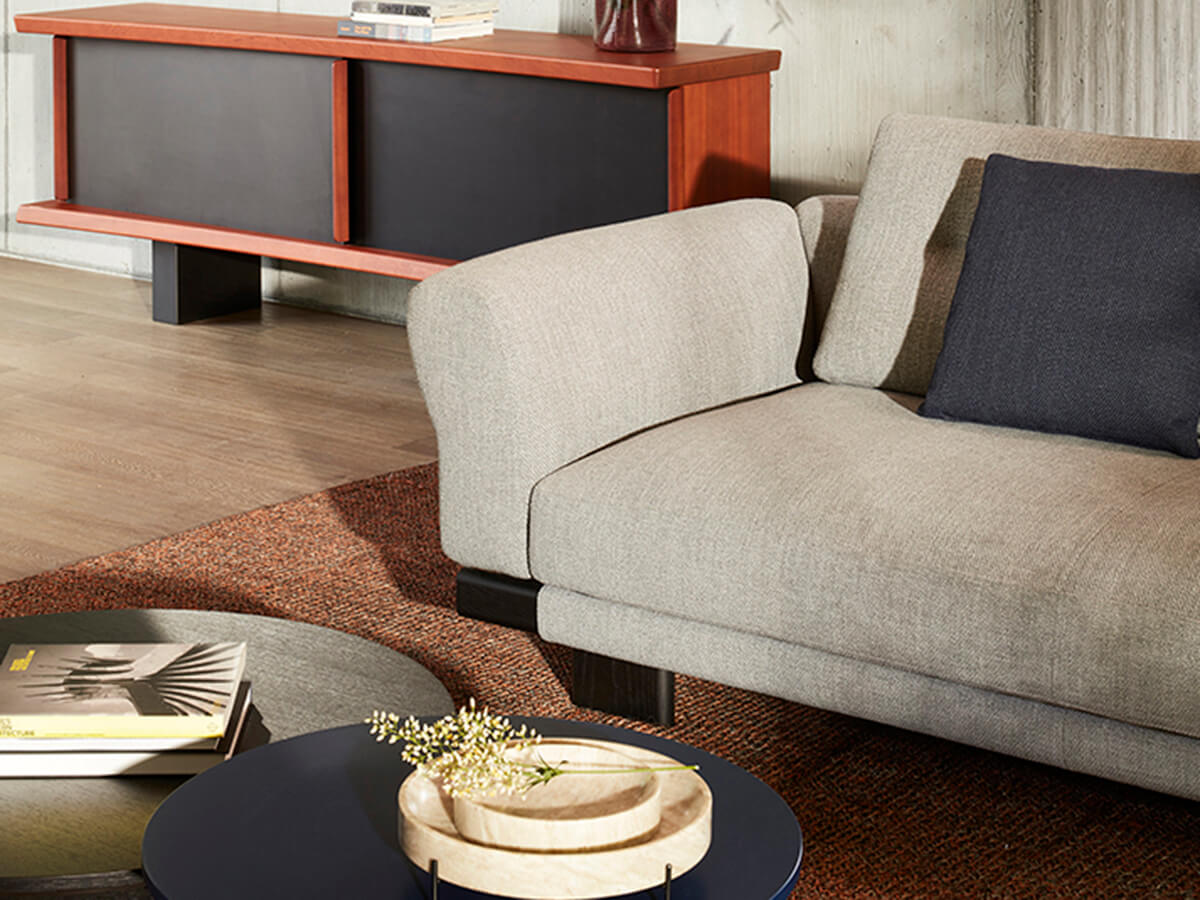 Developed by Patricia Urquiola’s creative mind, Sengu Sofa is a home sofa with a delicate design marked by big volumes suitable to combine any furnishing style. Simple shapes, natural materials and colours remind you to a Japanese atmosphere, a theme used several times by Cassina and in Charlotte Perriand’s pieces. The structure is composed by a steel frame which is smartly completed with wooden beams where the upholstery is laid on in order to create a total comfort suitable to meet the requirements of any customer. An outer quilting enriches the armrests, the backrests and the cushions, offering you a further precious detail. Cassina combines this personalization together with a large range of covers in fabric or leather for this model too.
