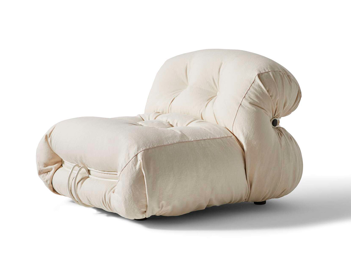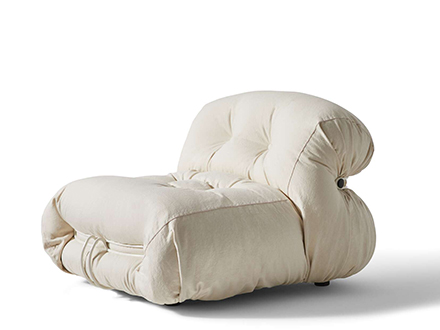 A unique design armchair, which captures Cassina's creative imagination, channeling it into a new and captivating portrait that lends itself well to the domestic living style. Soriana features soft and generous lines, a guarantee of limitless comfort, which opens the doors to conviviality and relaxation, as well as rest. The idea was born by Afra and Tobia Scarpa in 1969, starting from the possibilities offered by the molding of expanded polyurethane, a soft and ductile material, but at the same time particularly resistant to wear. Cassina offers numerous colors and finishes to better adapt this furniture to different settings or interior styles around the world. Soriana's structure is made of metal and holds the backrest and base in a vice so as to avoid the need for external support. As a result, the interior becomes softer and more welcoming.
