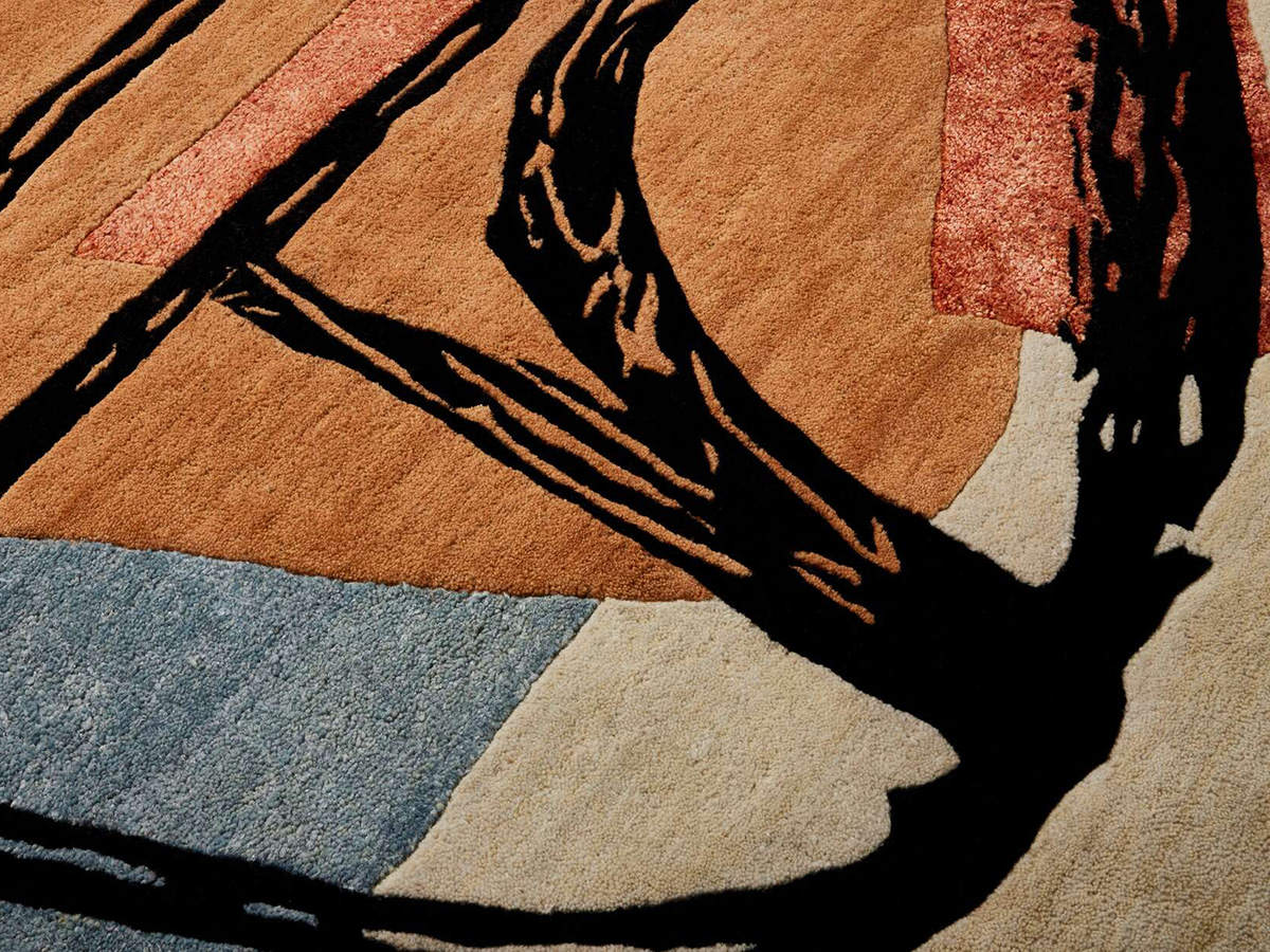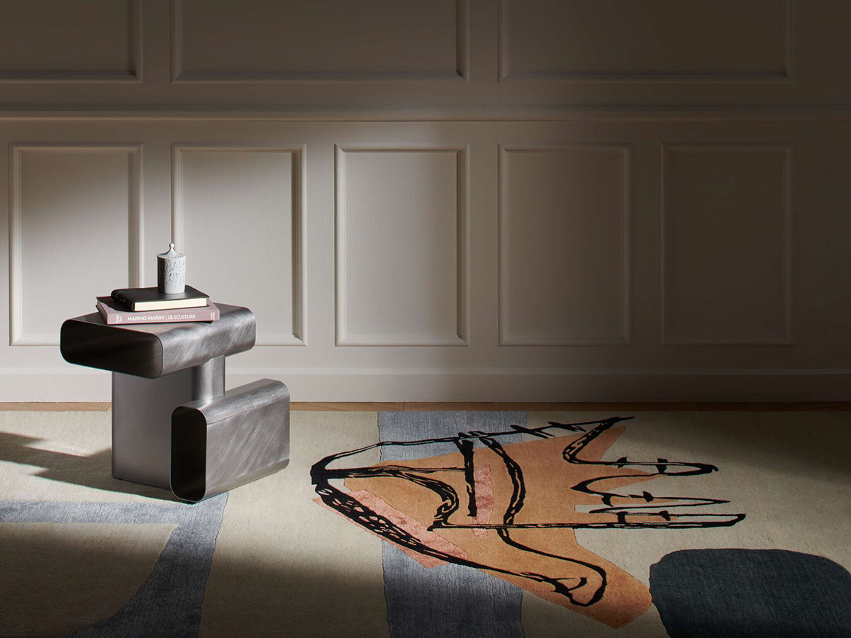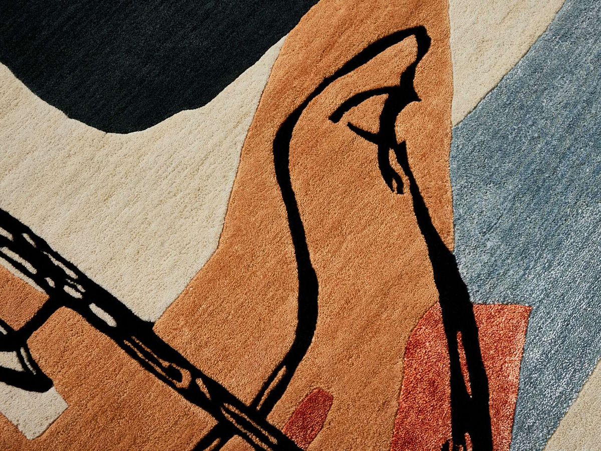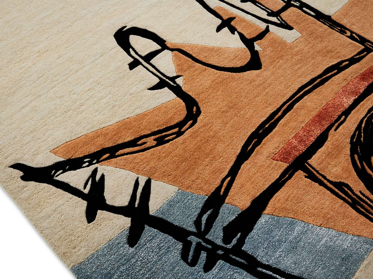 A carpet whose inspiration comes from Le Poème de l'Angle Droit, the art book published in 250 copies which collects Le Corbusier's vision of architecture. The design features a seven-color lithograph made in the historic Parisian printing house Studio Mourlot which seems to want to celebrate the theme of the open hand, symbol of the Indian city of Chandigarh, designed in the 1950s by Le Corbusier whose key to thought it follows. This carpet features a unique and artisanal production technique with handwork that enhances not only its quality but also its resistance over time. Ideal for any type of environment, it can adapt to any context where there is a need to place a unique, intriguing and absolutely original element that stands out.