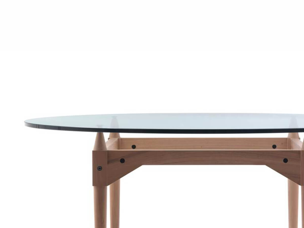 A table capable of embodying elegance and design in a single highly effective solution, designed to better match the needs of diversified environments. TL3 presents an innovative concept of disassembly that the architect Franco Albini has been able to place in the strut element, a recurring theme in his many works for high-end furniture such as the Veliero and Infinito bookcases. The legs are made up of single and almost completely turned blocks, while a wooden cone surmounts each support creating a dynamic detachment with the upper surface, aimed at enhancing the aesthetic lightness and a feeling of total impalpability. TL3 is available in different finishes and sizes to better fit in diversified environments.