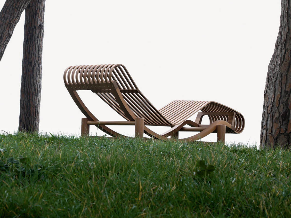 When form and function intertwine, creating a whole of inimitable beauty. Among the many admirable works by Charlotte Perriand, the Tokyo Chaise Longue stands out for the care of the shapes applied to a futuristic design that continues to amaze today at the dawn of its creation in 1940. The study of Tokyo begins during the designer's stay in the city of the same name, inspiration for the sinuous and welcoming shapes. The material chosen for the structure, bamboo, is a further and clear tribute. This evocative reinterpretation of the LC4 chaise longue has subsequently had several re-editions in teak and other finishes which, however, have never altered the original shapes consisting of 12 curved slats received in turn in a cradle of the same material and joints in satin brass.