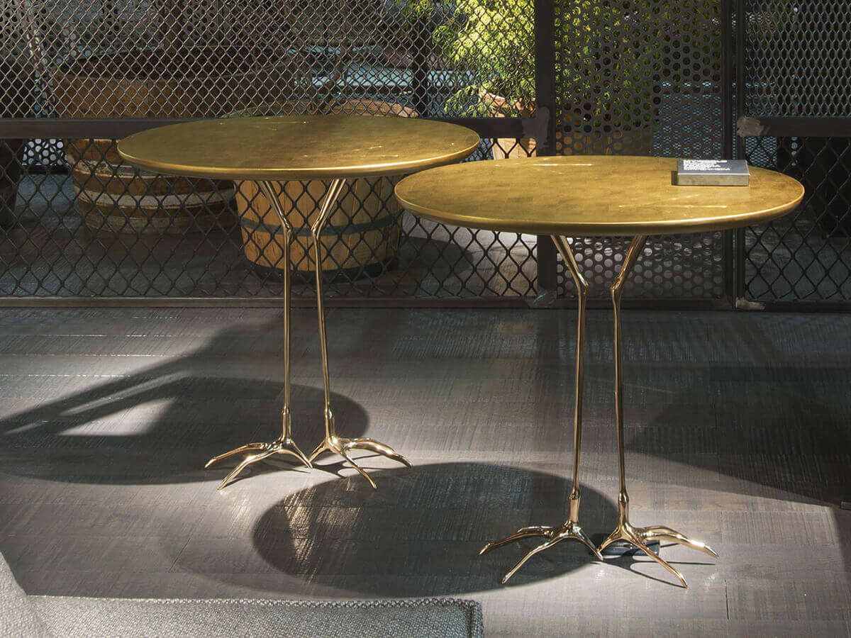 In 1971 Dino Gavino introduces "the functional work of art", inaugurating a new concept of furniture able to adapt the surrealist object to everyday use. From this influence the Cassina Ultramobile collection is born: an alternative and unconventional proposal capable of fueling the imagination and rational intelligence in its purest form. It is with this spirit that Meret Oppenheim designed in 1929 for the avant-garde gallery of Leo Castelli the Traccia coffee table, originally called the “Bird Leg Table”. The thin legs and claw paws in polished cast bronze are a clear tribute to the classic claw paws present in the furnishings of past centuries, revisited in a key that escapes the modern and throws itself into the futurism of the furniture. In the 1970s, the Simon International company created a version in a limited edition, which was then re-edited by Cassina in full compliance with the original model.