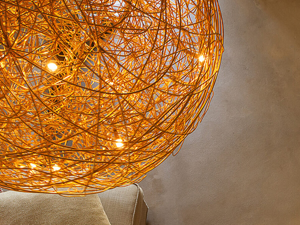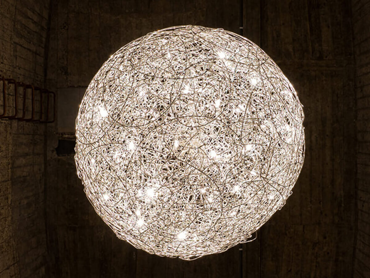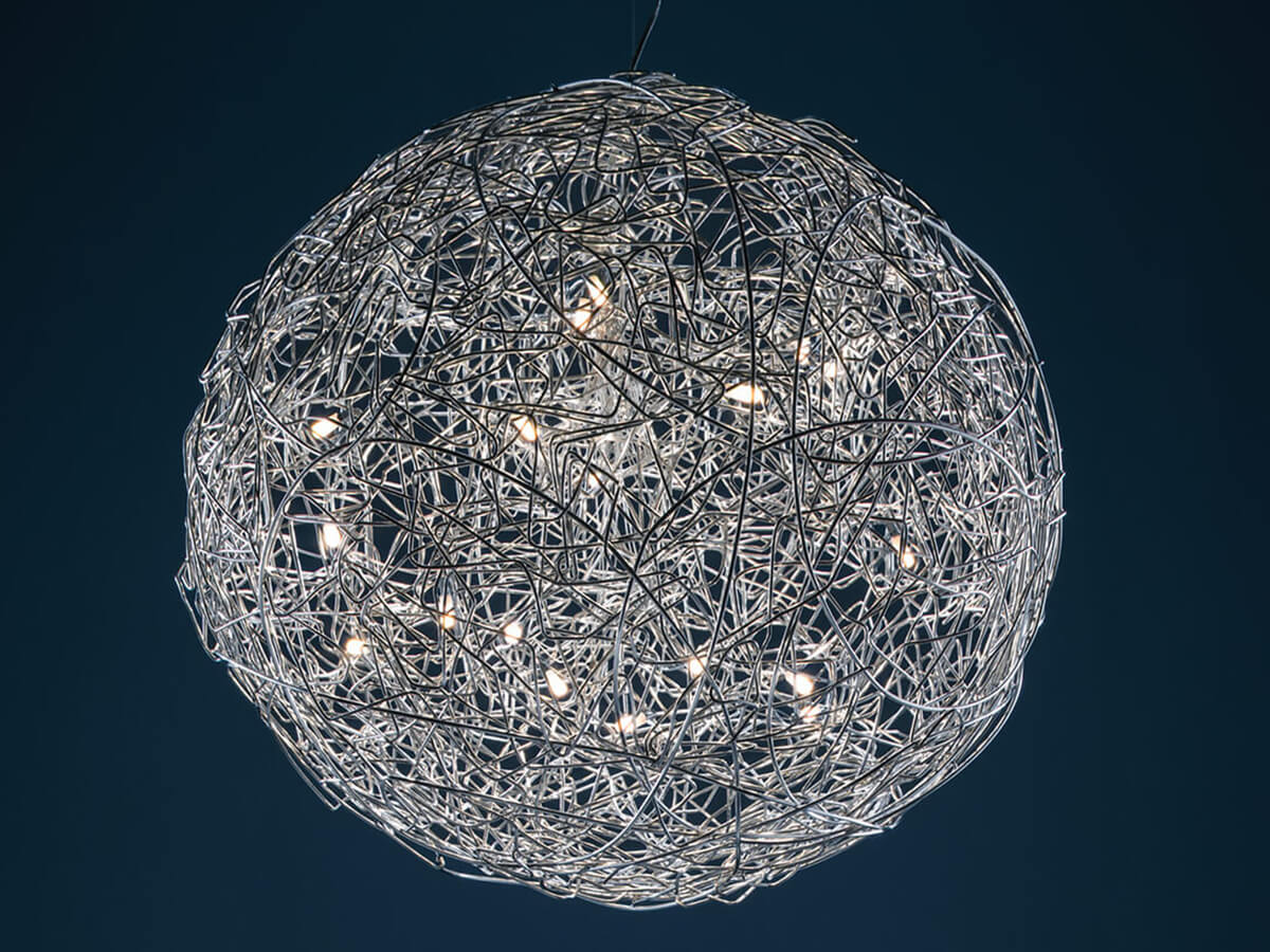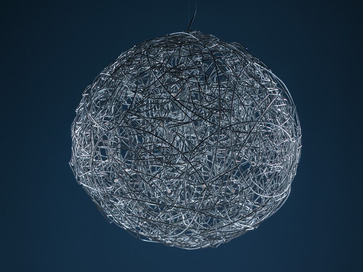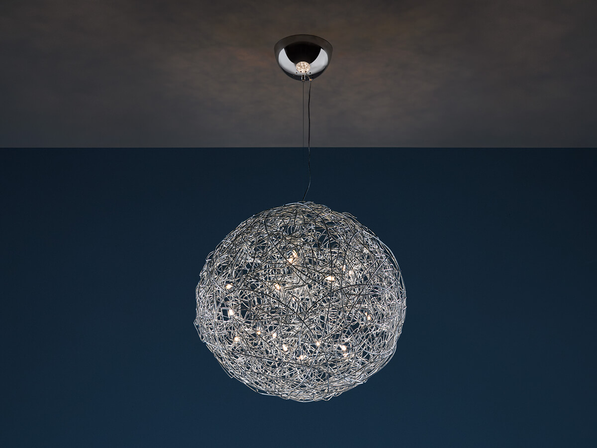 Artisan rigor and taste for a production centered around the product have allowed the designer Enzo Catellani to develop the prototype created years ago, following a specific request from a customer, to put into production for Catellani & Smith a real family of iconic lamps, called Fil de Fer, born from the intertwining of an aluminum wire. Particularly fascinating are the options for the ceiling both in the spherical version and in the more irregular one, which makes the lamp seem almost a cloud. Aluminum or gold finishes, made in different sizes, make this lamp a real sculpture, a work of art that has become a cult object over the years, able to adapt perfectly to any environment, enriching it and giving it a touch of inimitable design.