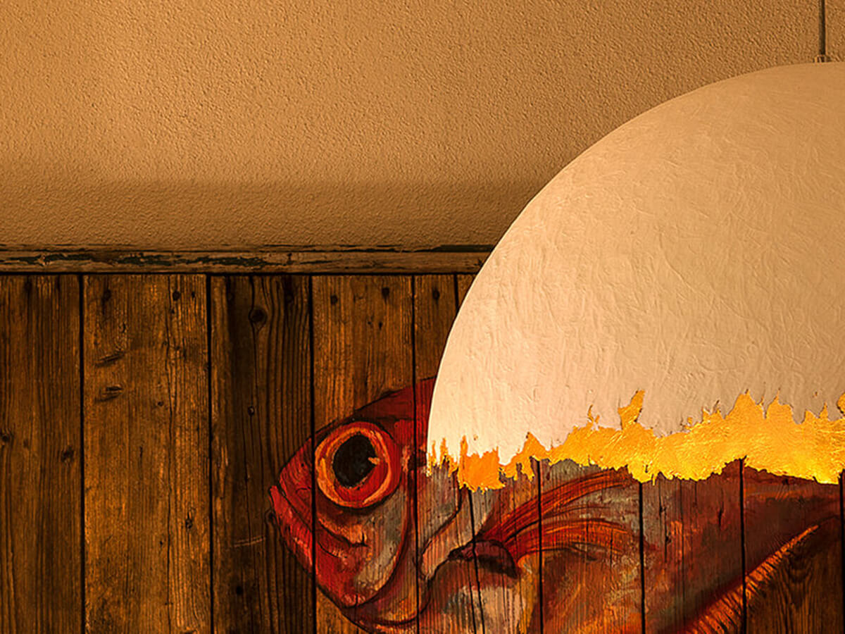 *Price valid for the version with shade in ø 40 cm in white fiberglass and golden leaf – bulb included (cod. PK494LWG).