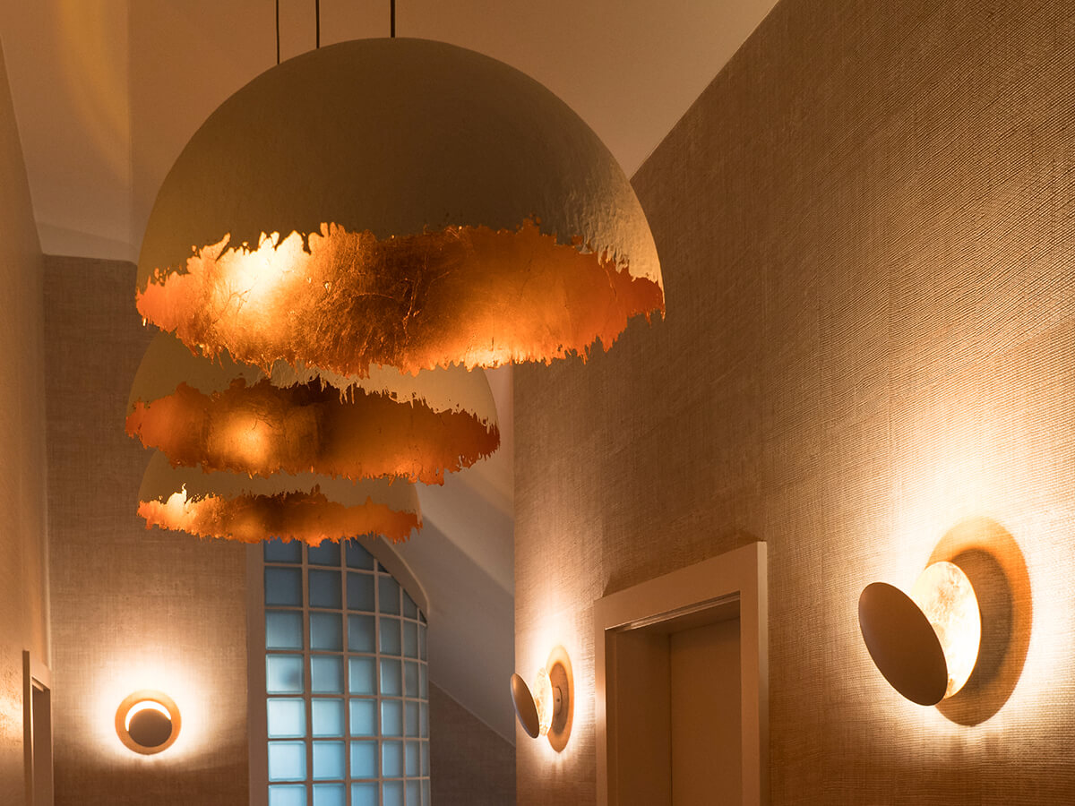 Neither architecture nor art: the formation of Enzo Catellani, the only and brilliant mind behind the Catellani & Smith brand, goes beyond the traditional canons of lighting design, remaining faithful to its personal inspiration. The research around the light and the pleasure of craft creation have led Enzo Catellani to create a wide range of luminous creations expressing a peculiar poetics. Here, simple materials, worked in the companys' workshop of Bergamo countryside, intersect with light in a play of golden and silver reflections.Read more