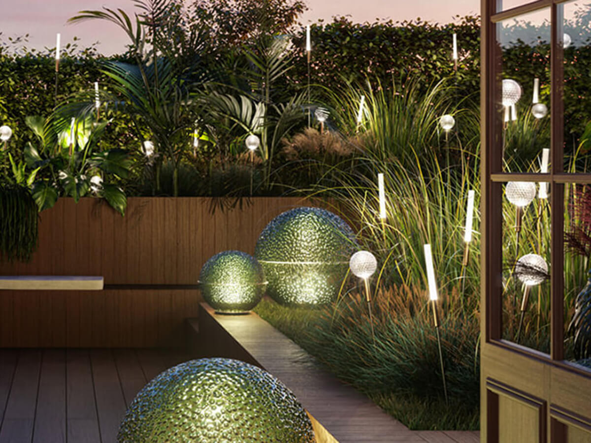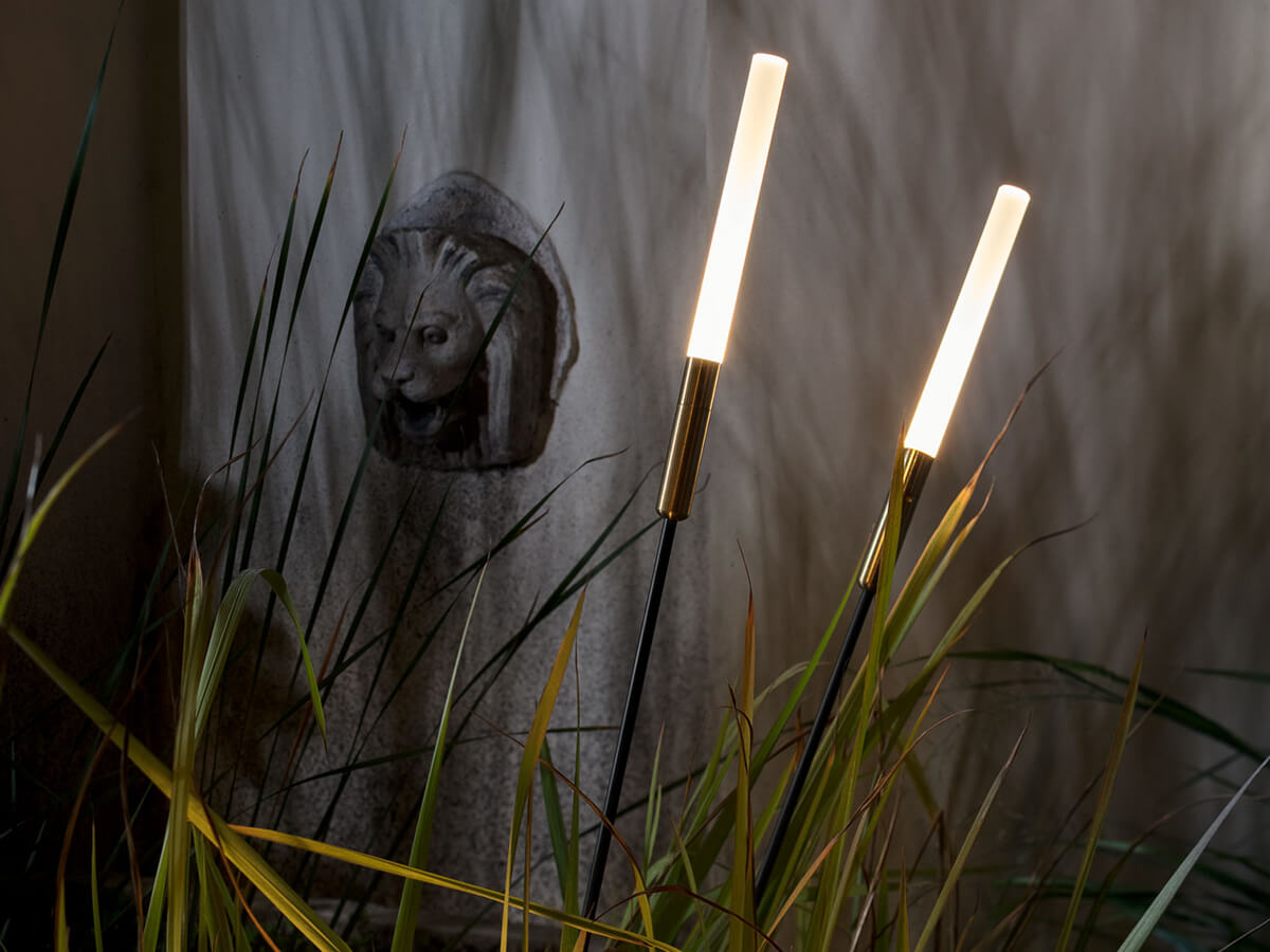 The Catellani & Smith collection of outdoor lamps offers lighting fixtures, designed for the outdoors but capable of reproducing the same atmosphere of indoor light, using glass as a characterizing element. The Syphasera floor lamp is made up of an opal glass cylinder with brass details and a black painted brass stem, available in four different heights. The glass craftsmanship and LED technology combined with a shape that evokes elegance and lightness facilitate the insertion of this lamp in natural environments where it offers suggestive plays of light and shadow.