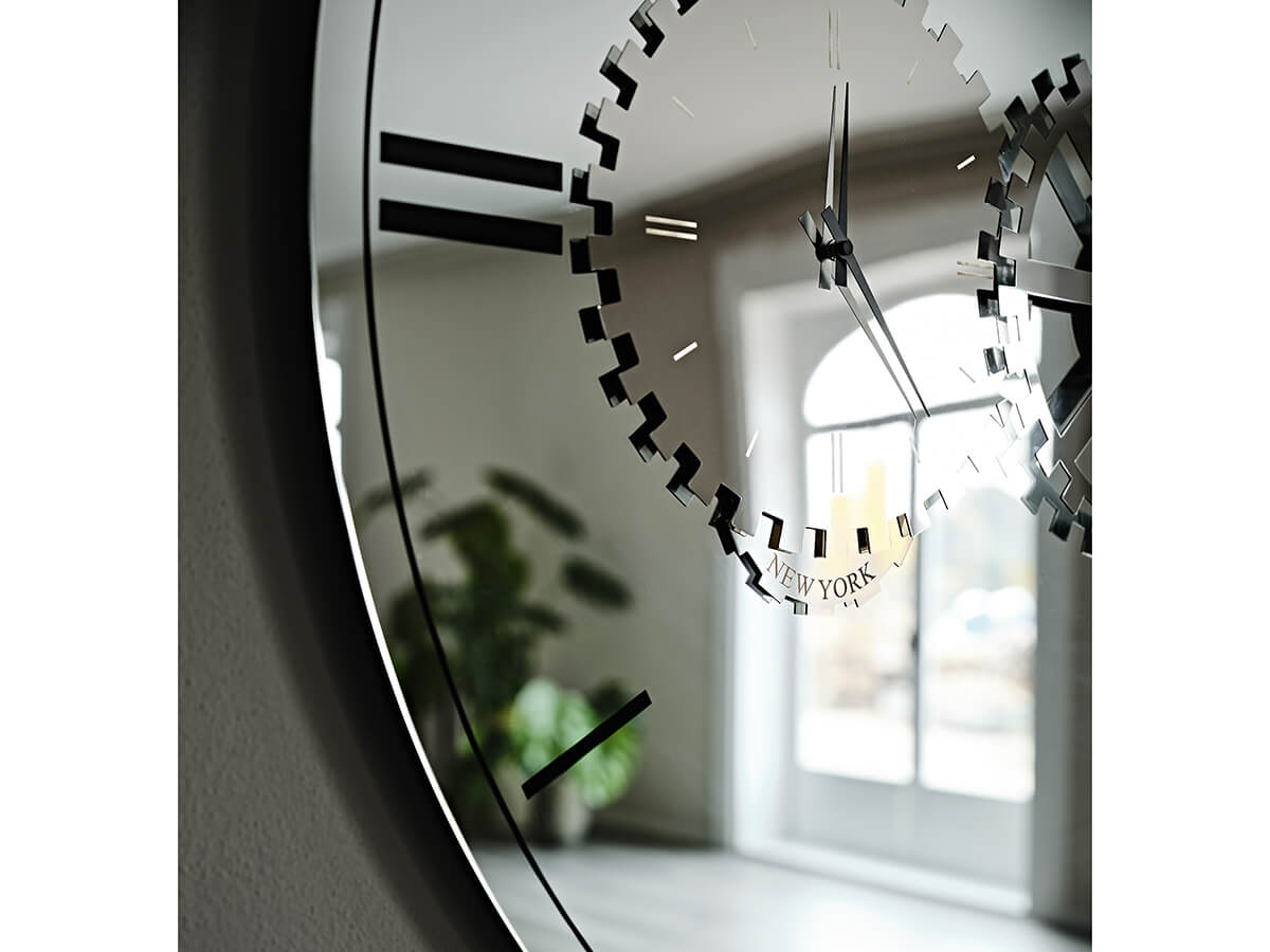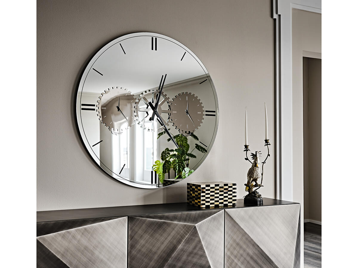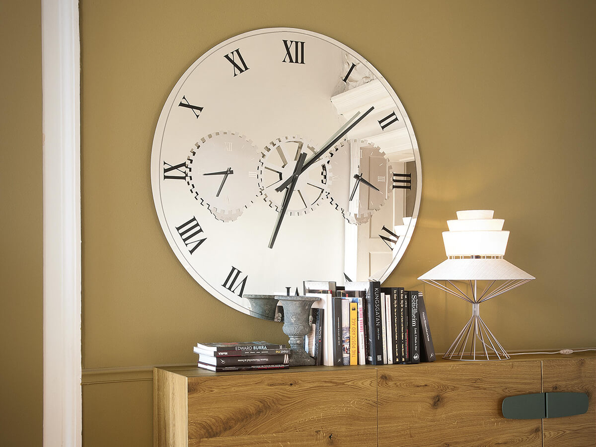 A timeless object, capable of enclosing modern eras and vintage flavors in a single solution. Times embodies the charm of a mirror, embodied in the solid practicality of the wall clock. It is a decorative design accessory that retains a unique and irreplaceable function. It consists of three dials to be placed on different time zones. The left dial can be adjusted to New York, London or Rome, while the right dial to Moscow, Tokyo or Sydney. Cities are engraved on the rotating mirror below. The result is an elegant, contemporary, beautiful and above all, useful object