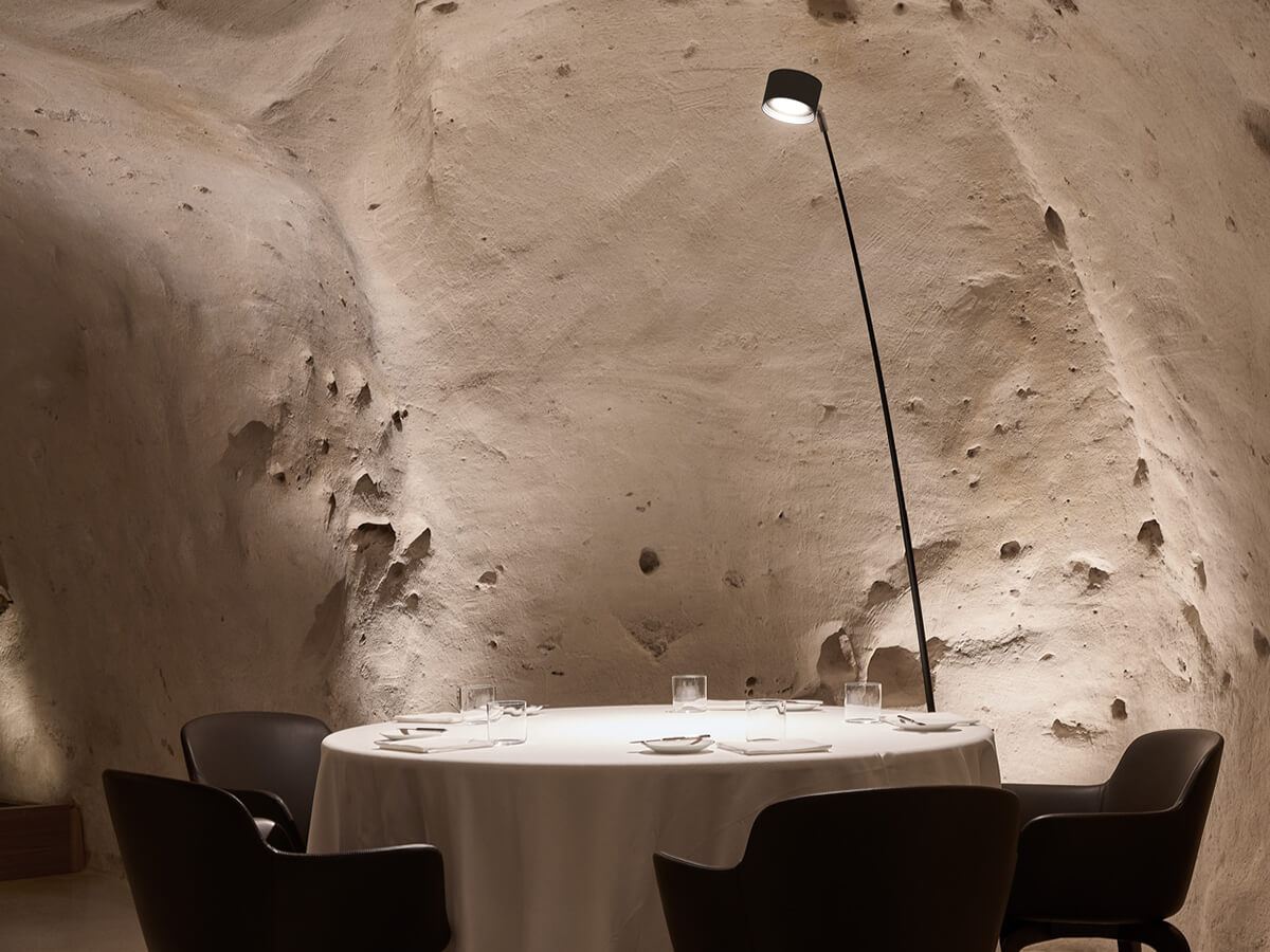 Davide Groppi (1963-) is an Italian designer specialized in the creation of lamps. His distinctive feature is a poetic minimalism that finds expression in lights with dry and almost invisible shapes, capable of blending into the environment while remaining protagonists. Davide Groppi's lamps are almost metaphysical and impalpable creations, yet always ingenious and cutting-edge from a technological point of view: for example, he was the creator of one of the very first very successful portable rechargeable lamp models with his Tetatet model. All these characteristics earned him the victory of two Compasso d'Oro, both in 2014, for the Nulla lamp and the Sampei lamp. A mechanical designer by training, Davide Groppi began creating lamps in 1988 in a small workshop in the center of Piacenza, obtaining ever-increasing appreciation. A first turning point in his career occurred in 1994, when he met Maddalena De Padova who decided to bet on him by purchasing a large quantity of Baloo lamps for a special display in his shop in Corso Venezia. Another key moment was the sale of the Davide Groppi brand to the Italian Design Brands group in 2018, which keeps Davide at the helm of design and which allows the company to significantly grow in size until it is positioned among the most well-known Italian brands in the sector of lighting. Lamps designed by Davide Groppi also appear in the catalogs of other brands such as Boffi and Paola Lenti.