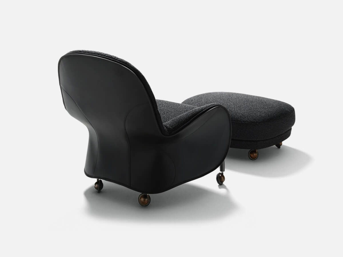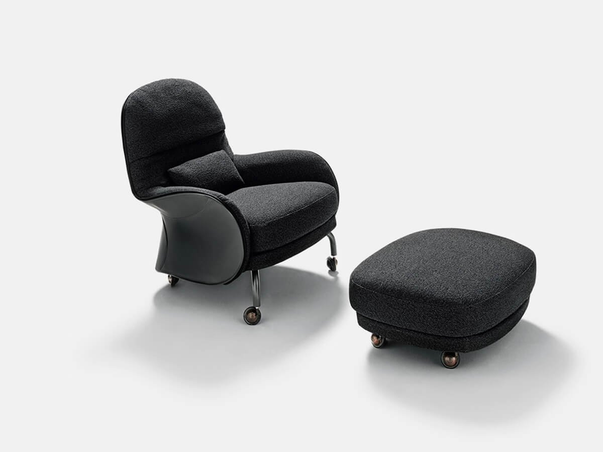 *Price valid for the version with ottoman - armchair with outer shell in natural saddle leather and inner shell covered in fabric cat. C2 - ottoman covered in fabric cat. C2 - with castors (cod. LUP#NAC2 + LUPF0#C2).