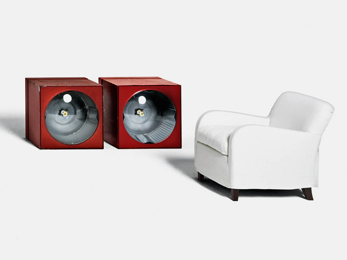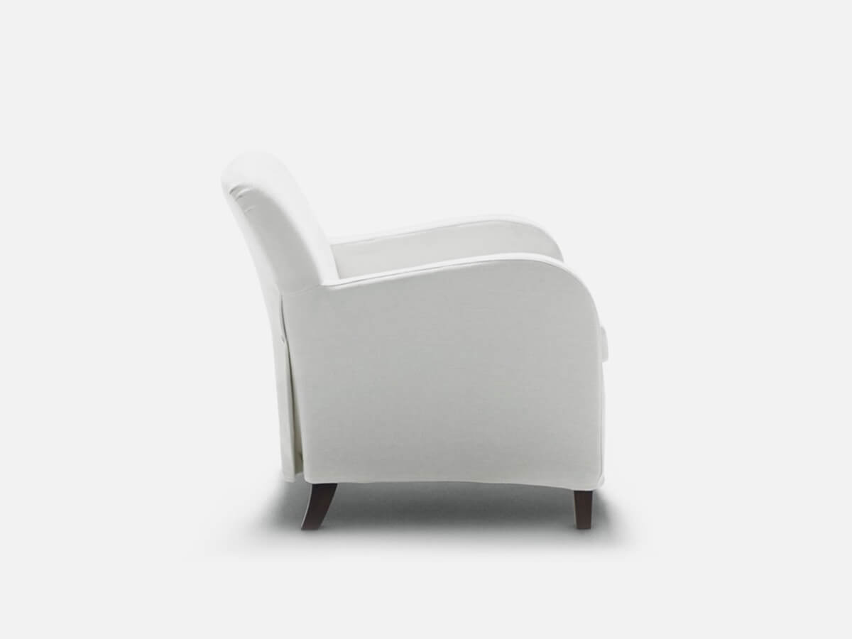 An explicit reference to traditional British bourgeois armchairs, the Susanna armchair by De Padova was designed by Vico Magistretti as a tribute to his daughter. With small dimensions and discreet aesthetics, Susanna is an armchair with a very traditional, almost out of date appeal. The white denim cover is completely removable and covers it entirely with minimalist elegance, leaving only the four small wooden feet showing. Susanna by De Padova refers to archetypal and timeless forms and brings to mind suggestions related to childhood and an orderly and peaceful world.