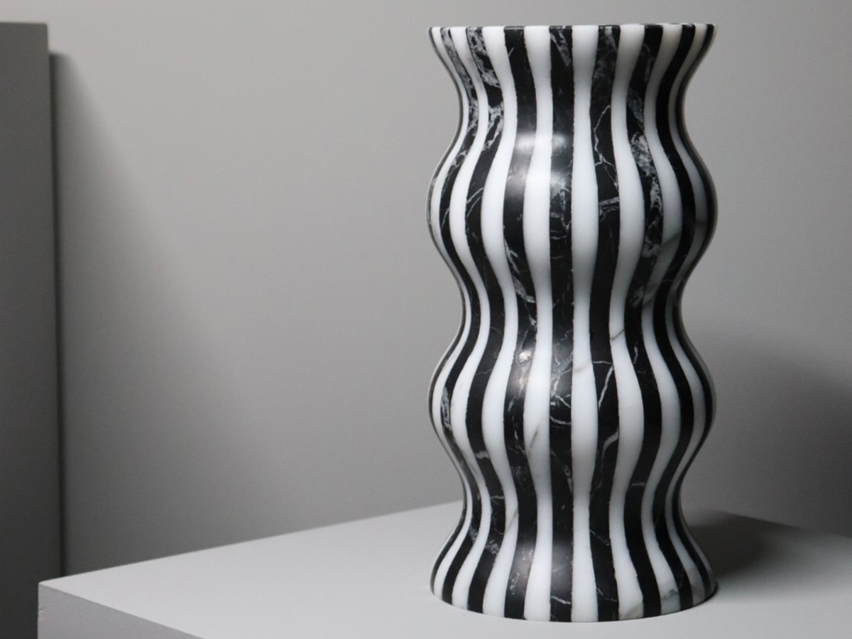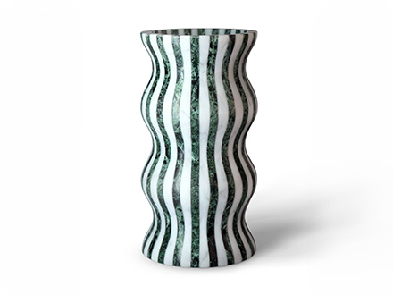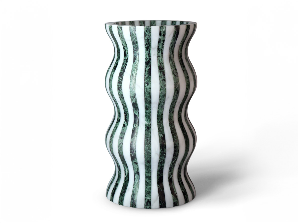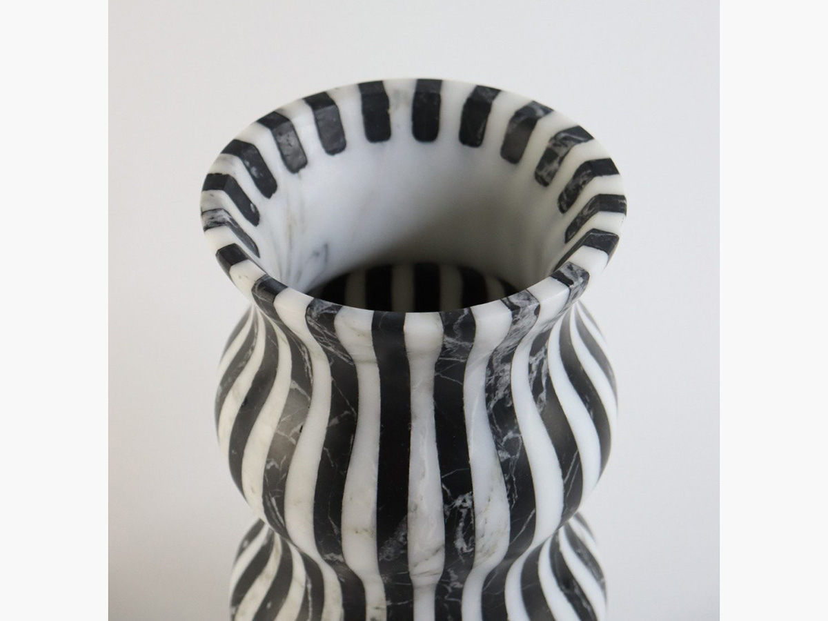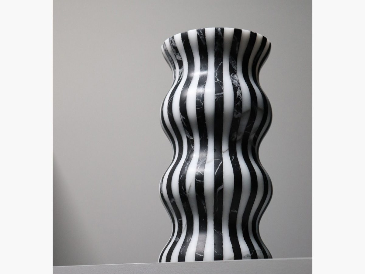 Editions Milano’s masterful ability to shape stone finds a more than worthy demonstration here. Versilia is a vase with soft and elegant shapes, modeled from marble and joined to create a form that is pleasing not only to the eye but also to the touch. In a succession of waves and chiaroscuro, Versilia conforms to the surrounding space, becoming an integral part of the furniture and its highest expression. The structure of Versilia is made of black Marquinia and Arabesco marble, two colors in antithesis to each other that when combined create a one-of-a-kind effect.